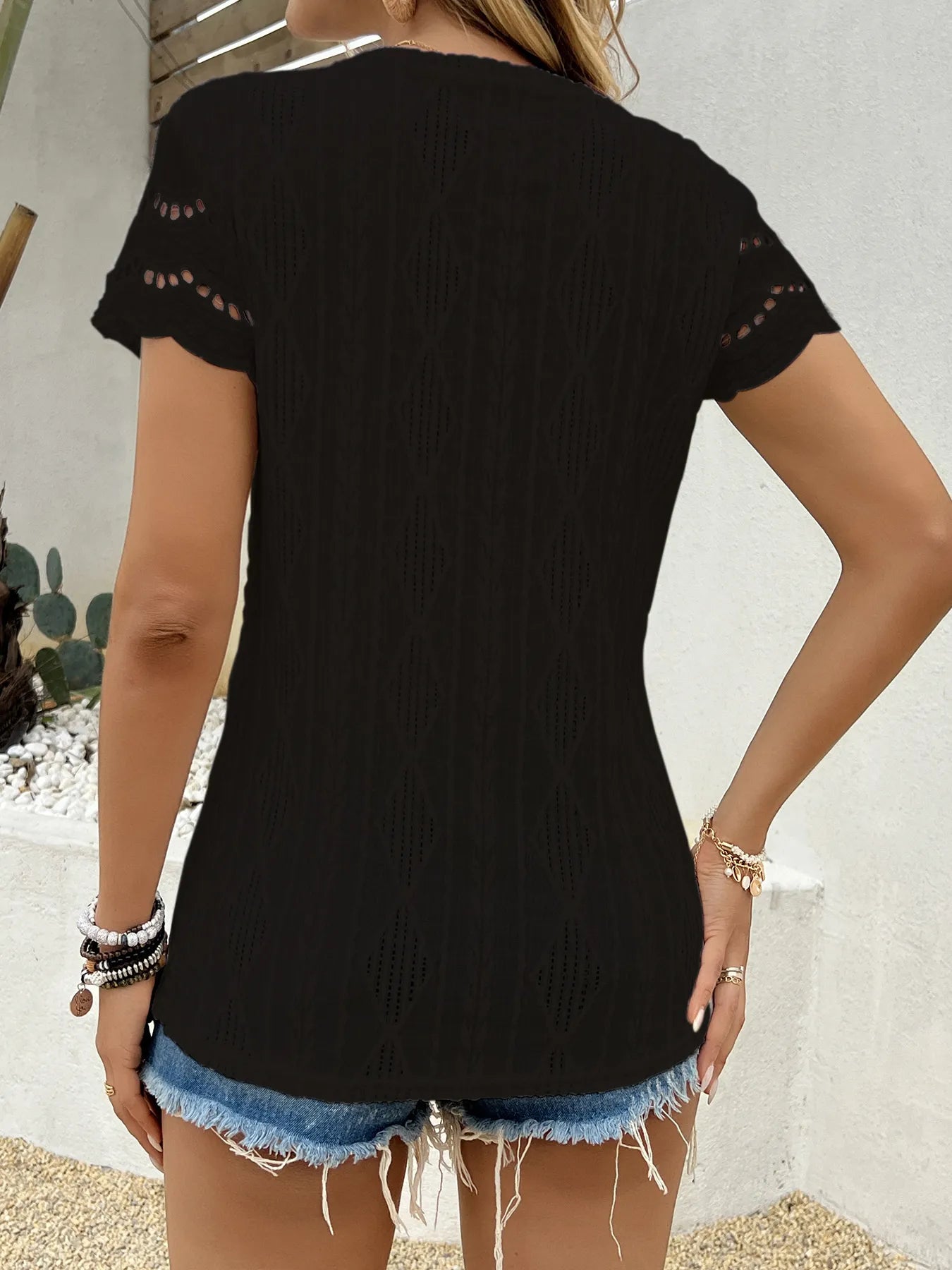 Crochet Lace Short Sleeve T-Shirt