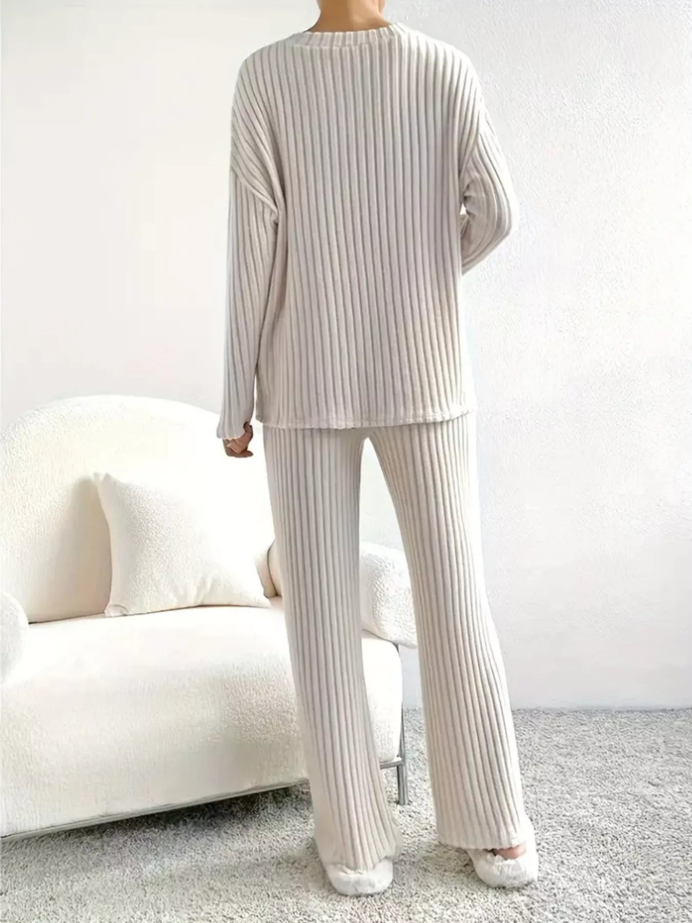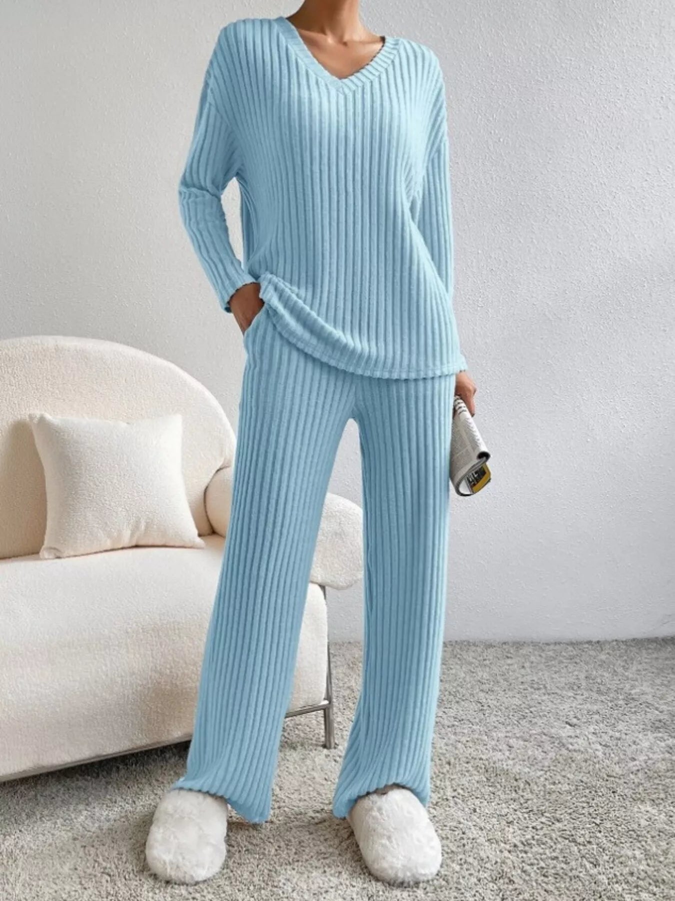 Plus Size V-Neck Long Sleeve Top and Pants Set