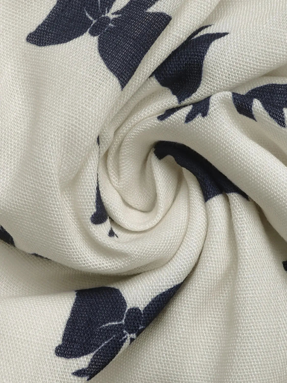 Floral Print Striped Trim V Neck Long Sleeve Ruffle Hem Shift Mini Dress