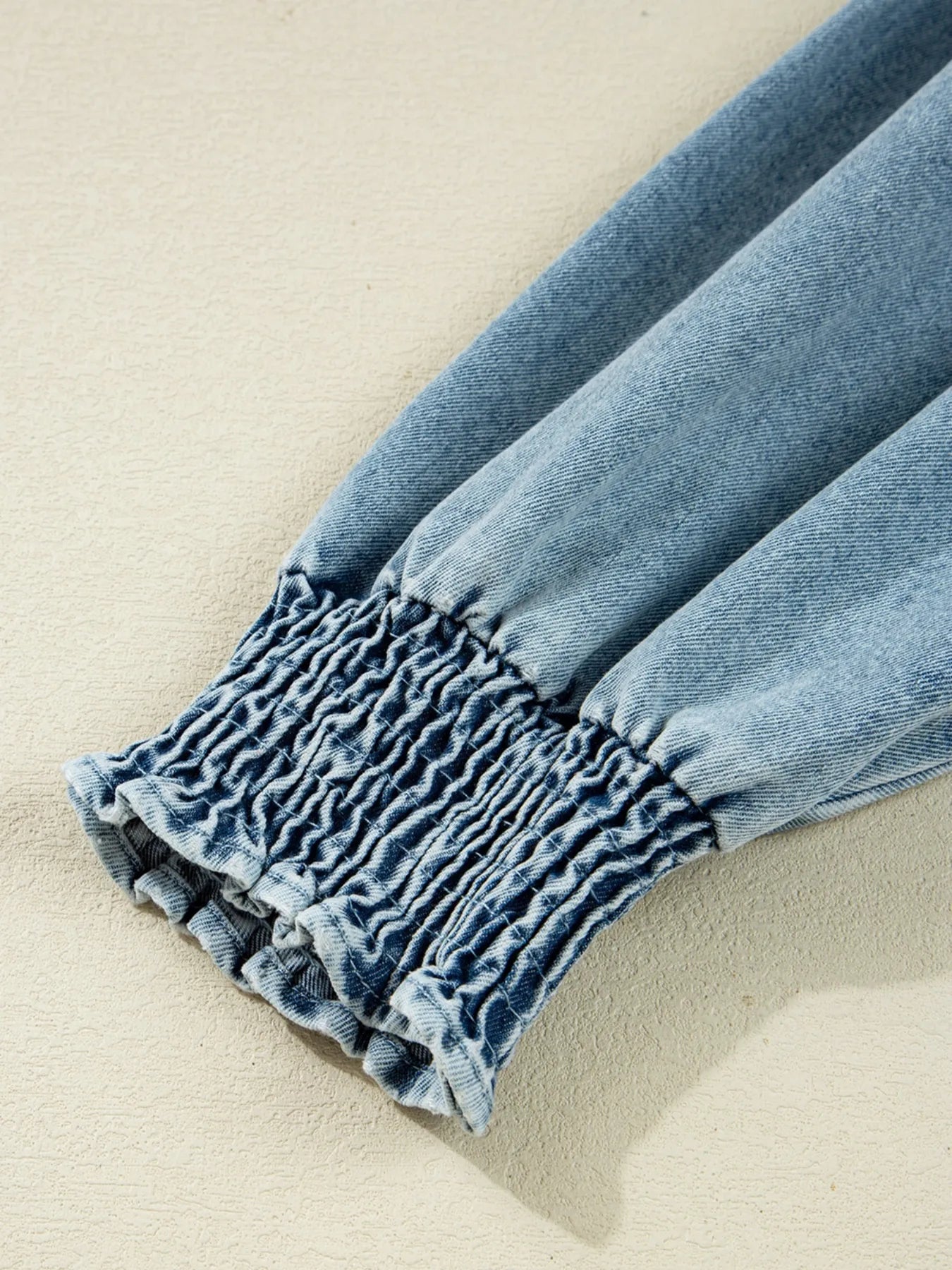 Button-Up Denim Shirt Dress with Smocked Cuffs