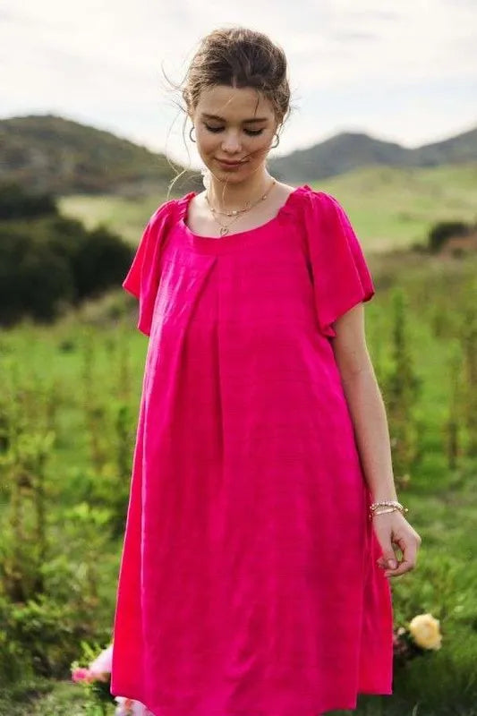 The textured ruffle boat neck shift dress is an elegant and feminine piece featuring a boat neckline and ruffle detailing. The textured fabric adds depth and interest to the dress, while the shift silhouette offers a relaxed and flattering fit. This dress is a versatile and stylish option for both casual and dressier occasions, providing a chic and sophisticated look with a touch of playful flair.
