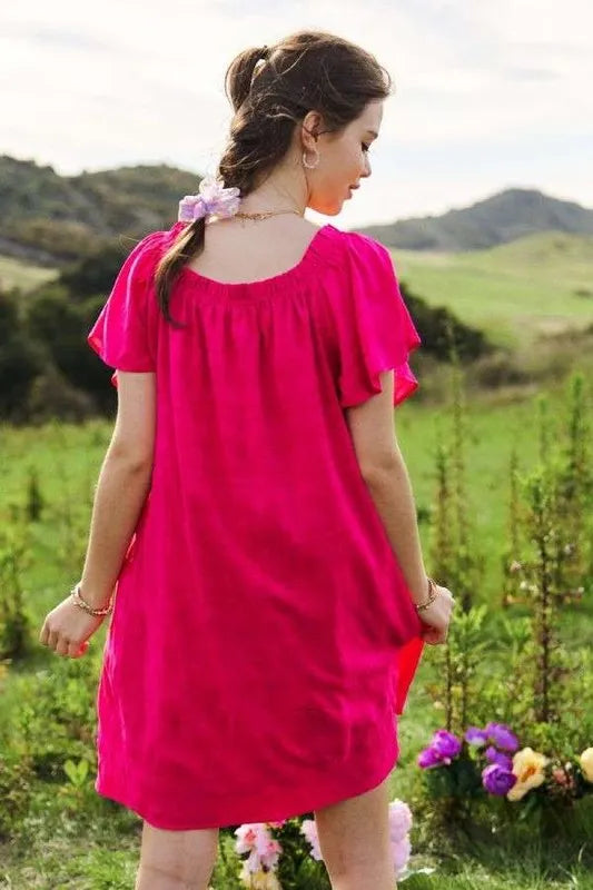 Davi & Dani Textured Ruffle Boat Neck Shift Dress