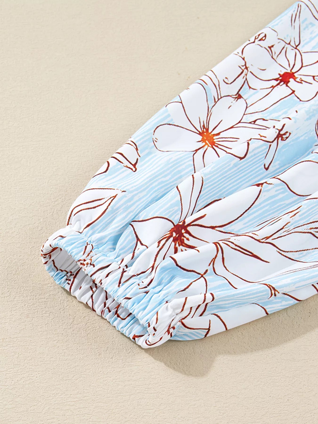 Floral Print Tie Neck Long Sleeve Mini Dress
