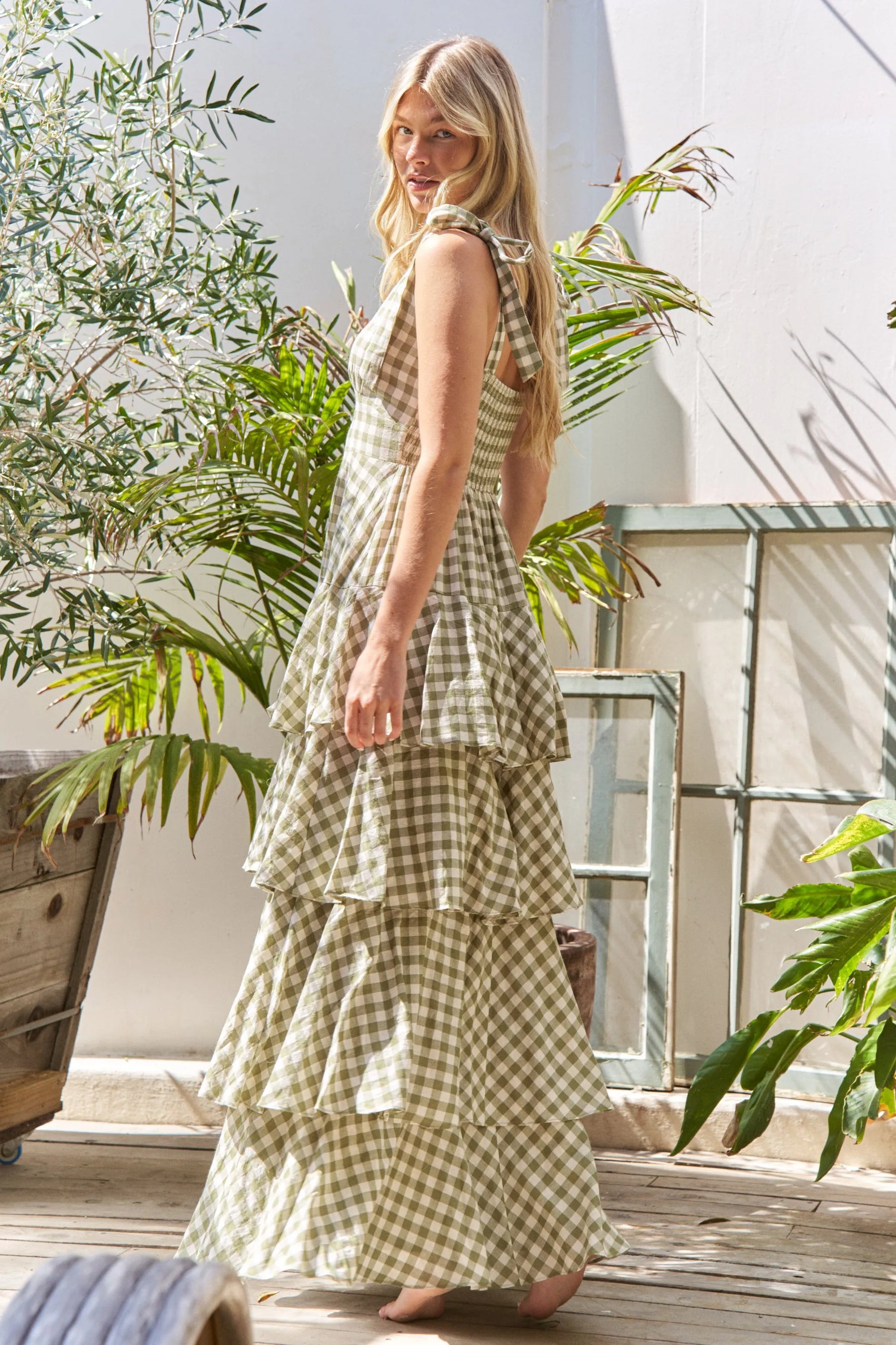Jade By Jane Gingham Tiered Maxi Dress
