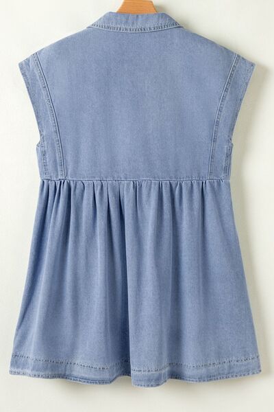 Lapel Neck Cap Sleeve Denim Babydoll Dress