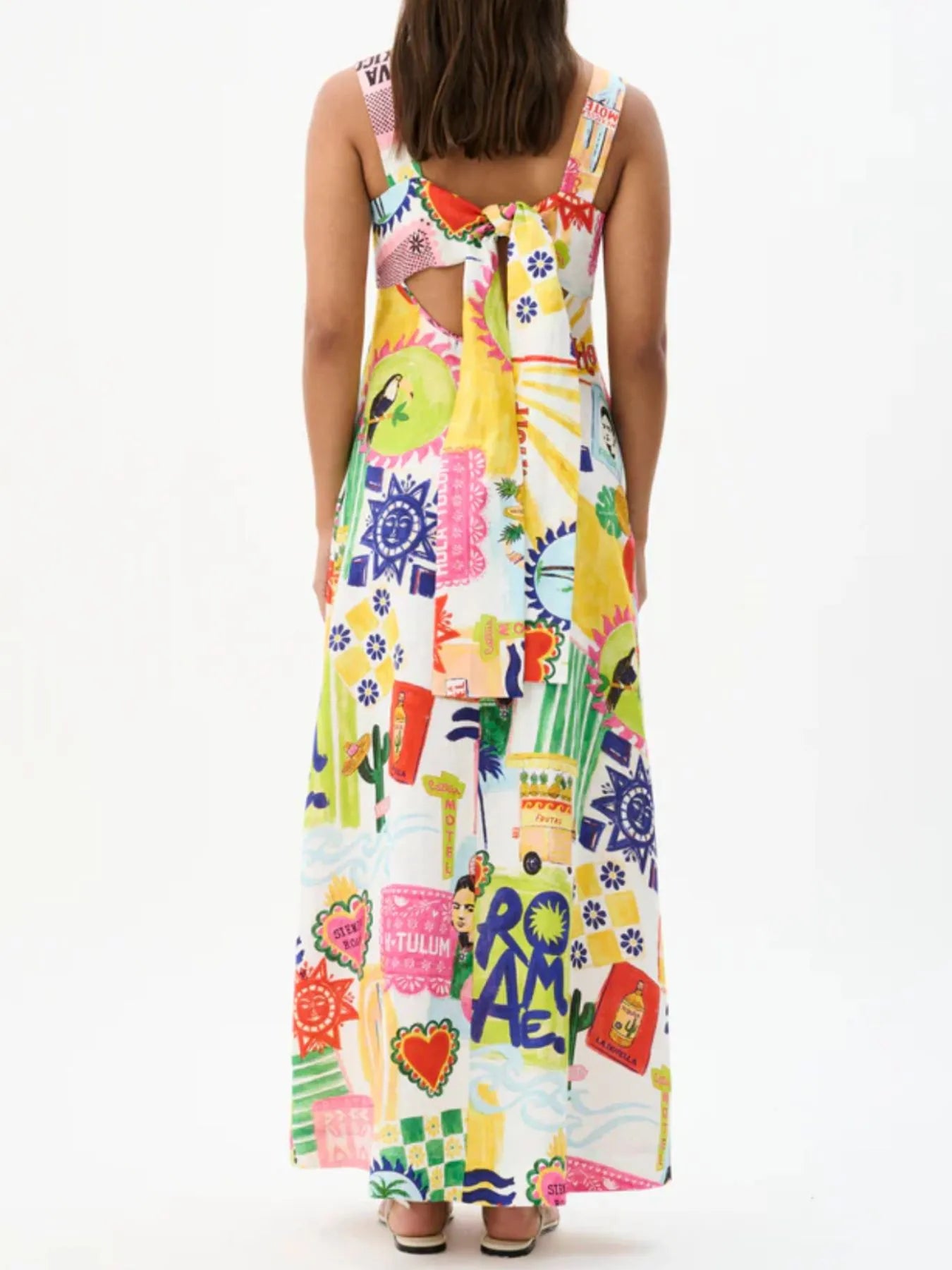Floral Print Striped Trim V Neck Long Sleeve Ruffle Hem Shift Mini Dress
