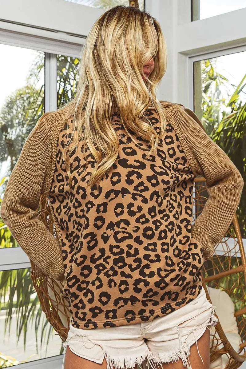 BiBi Leopard Pattern Front Raglan Sleeve Sweater