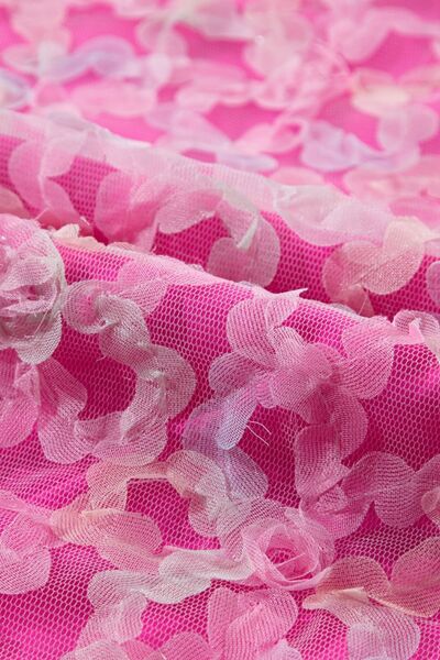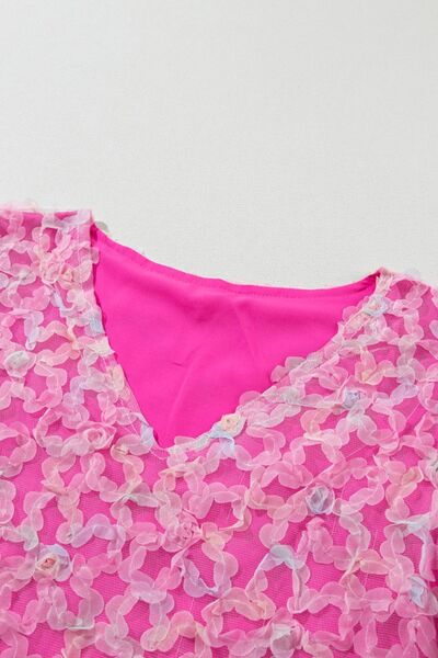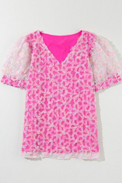 Bonbon Flowery Mesh Short Puff Sleeve Blouse