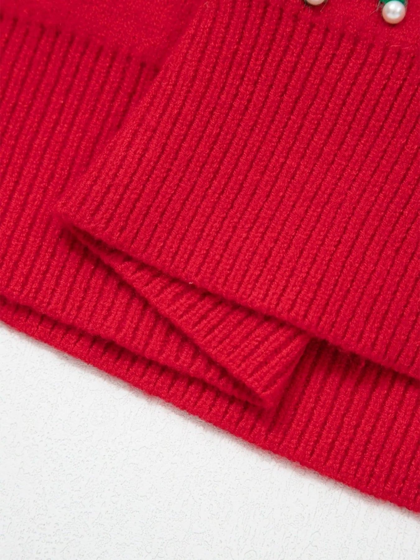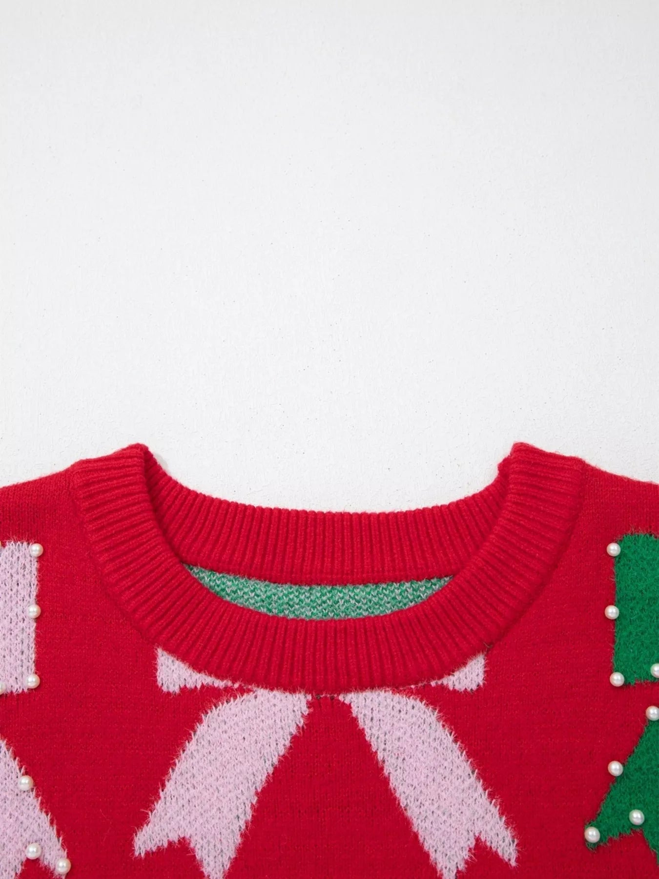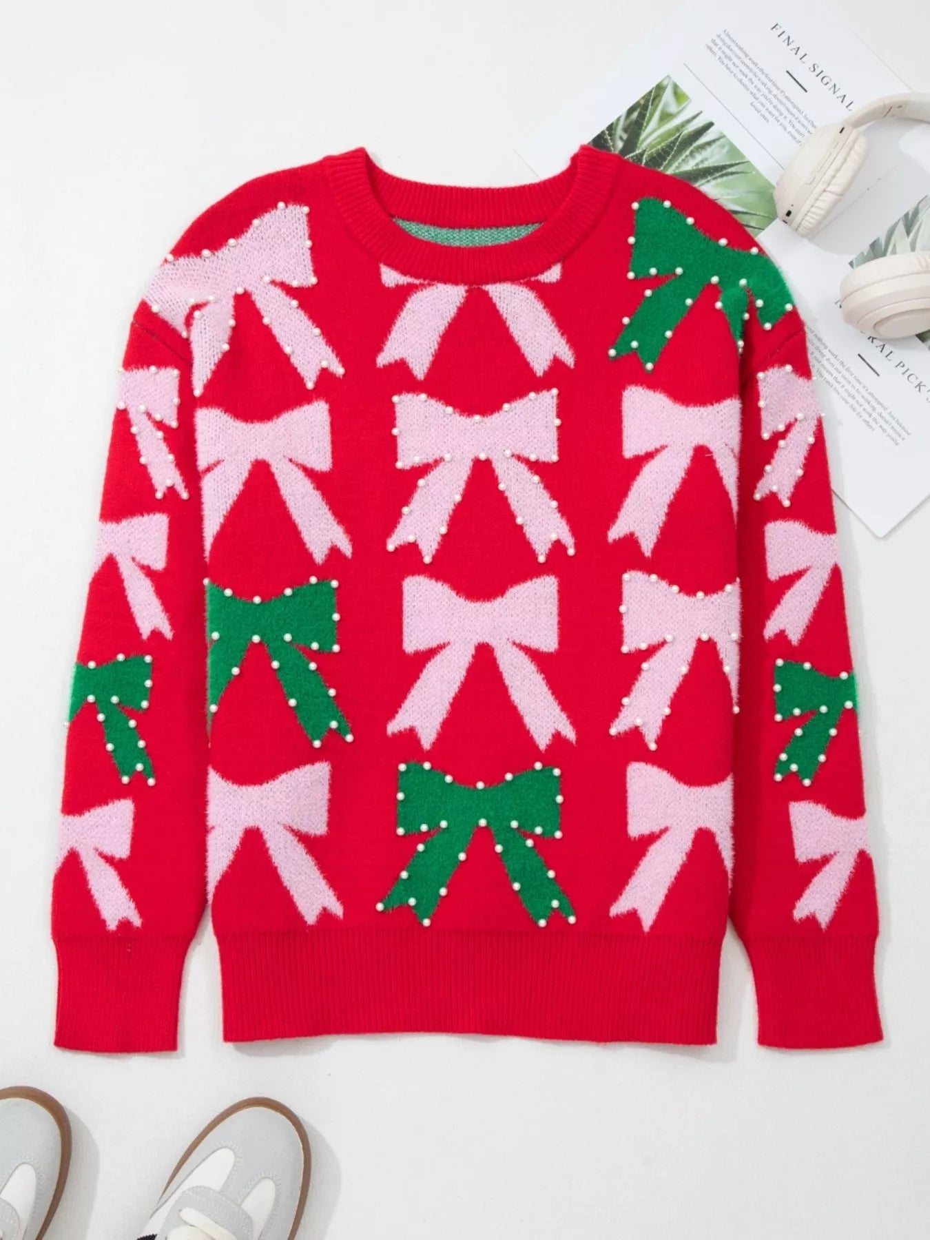 Bow Pearl Embellished Christmas Holiday Sweater
