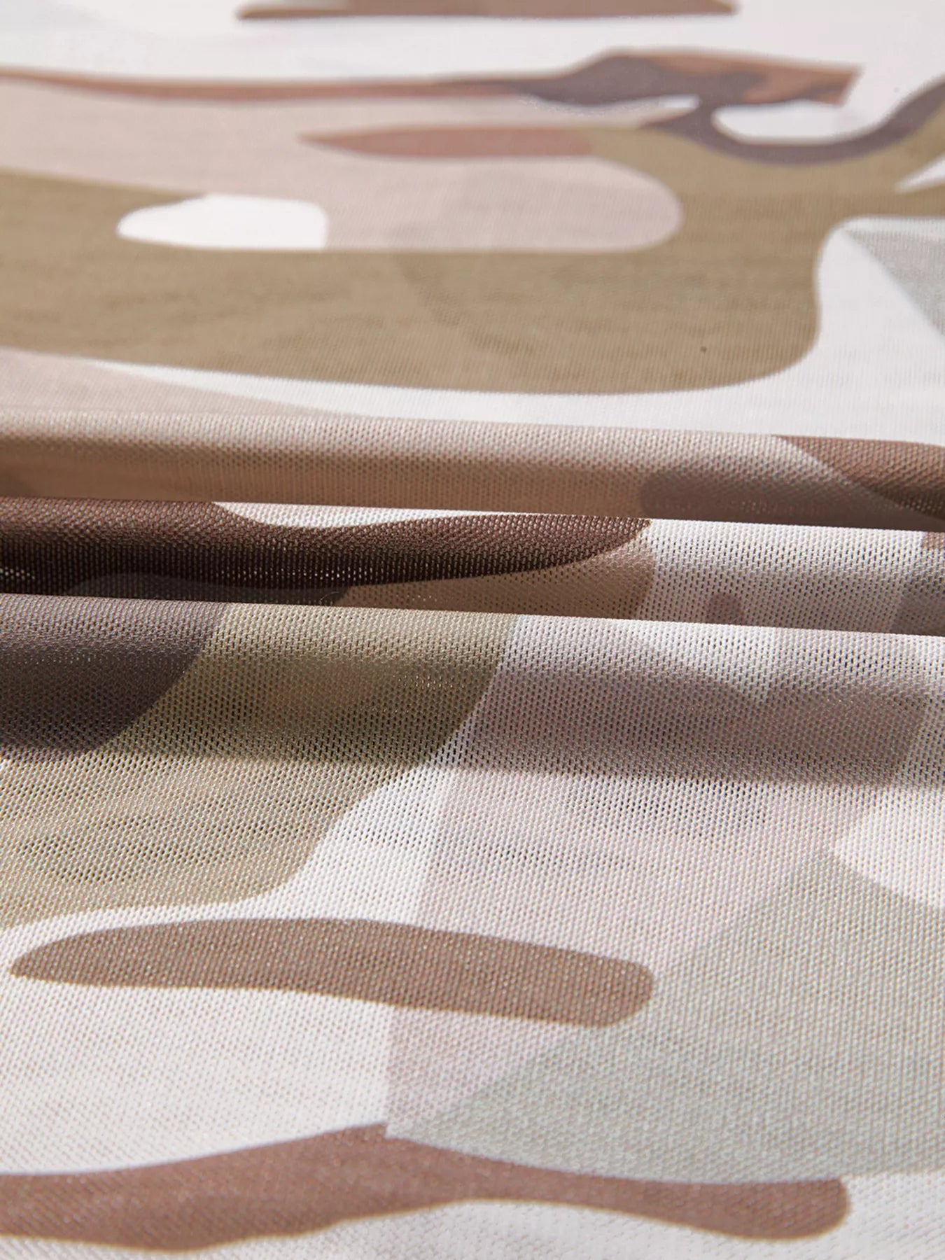 Camouflage Print Mesh Long Sleeve Top