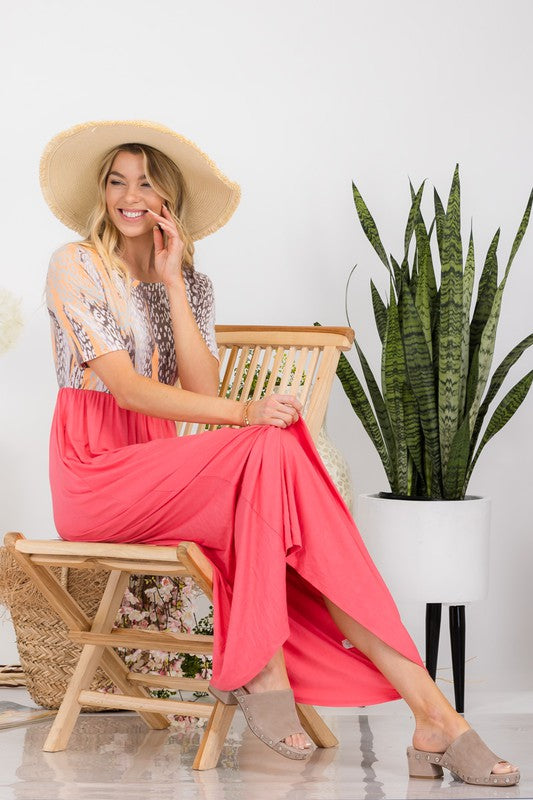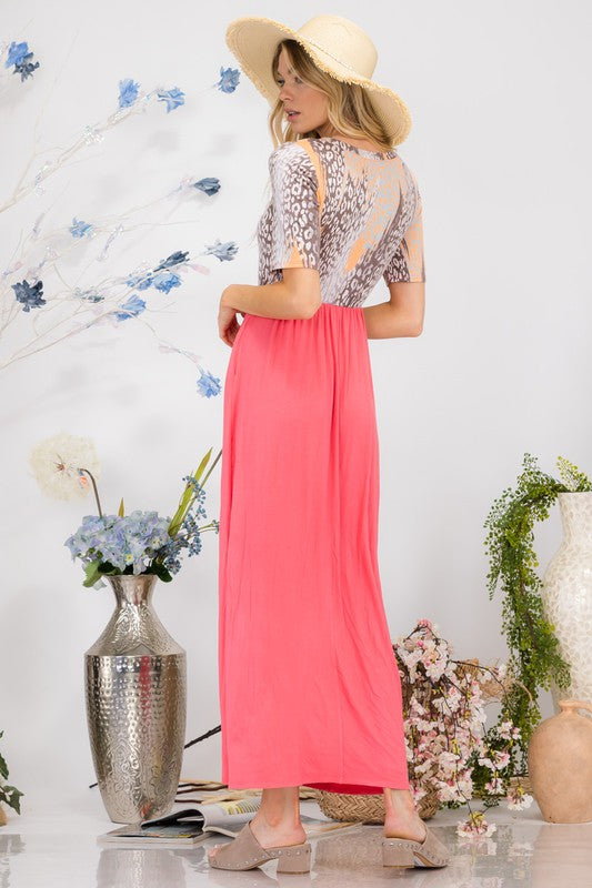 Celeste Full Size Leopard Round Neck Short Sleeve Maxi Dress Plus Size