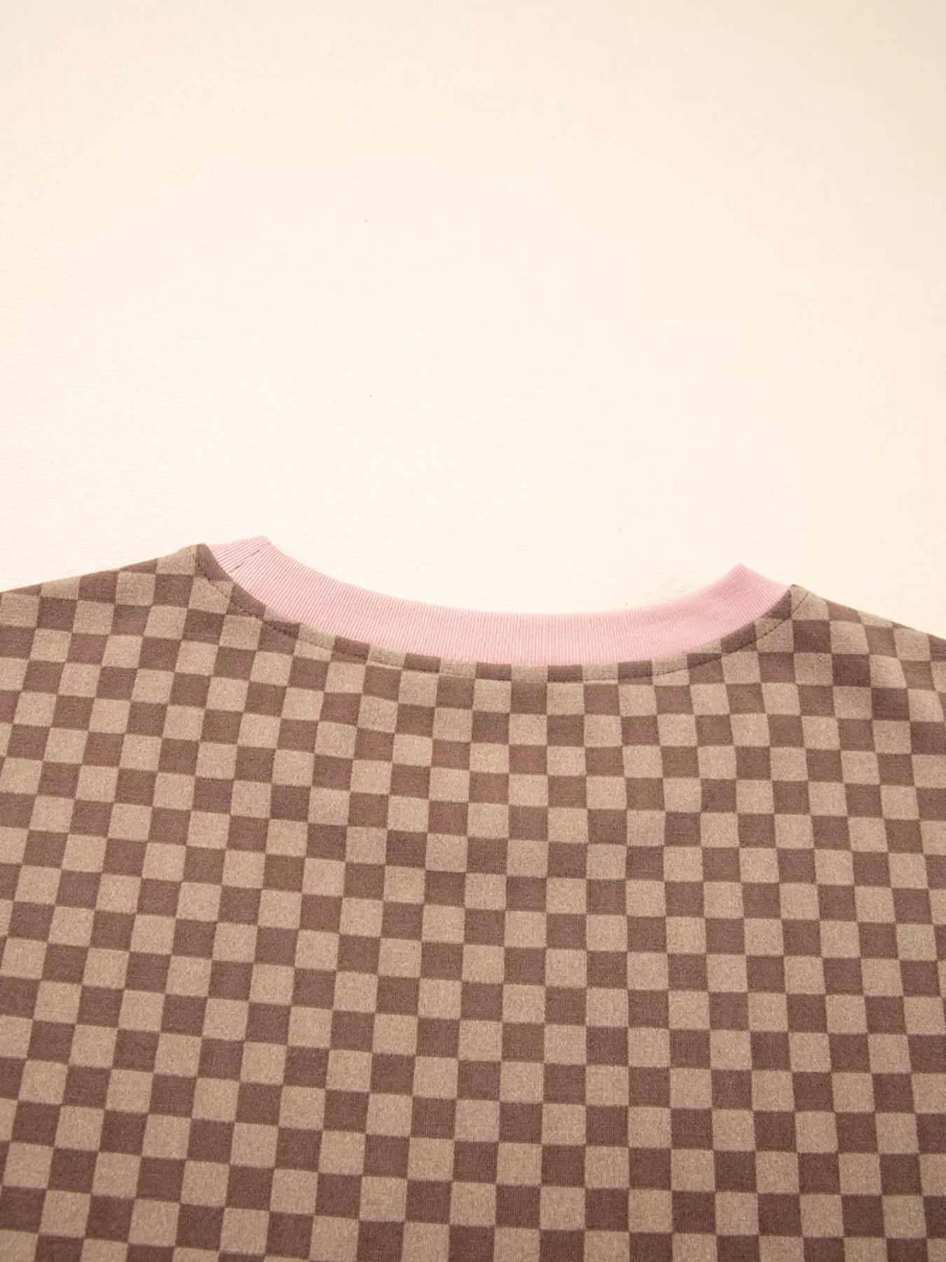 Checkerboard Long Sleeve Pullover and Shorts Set