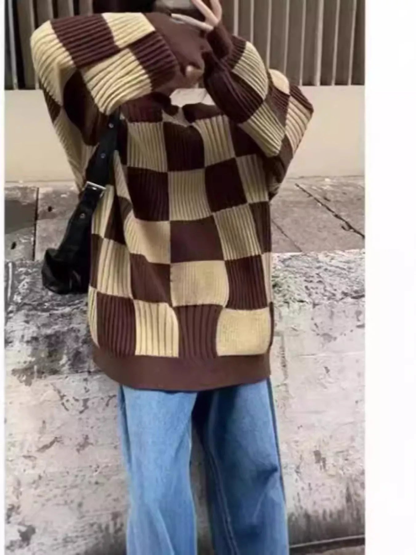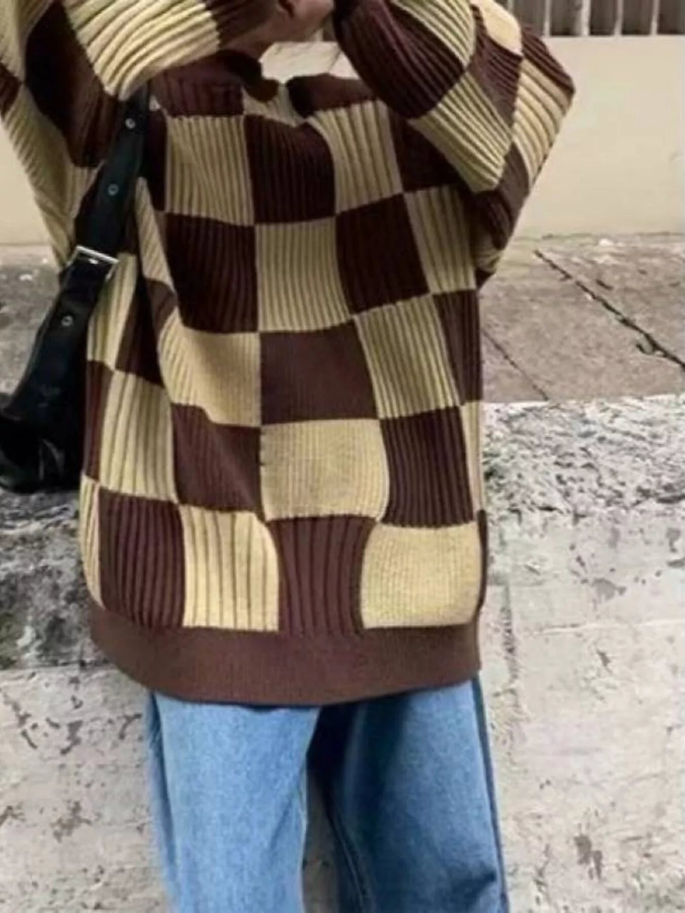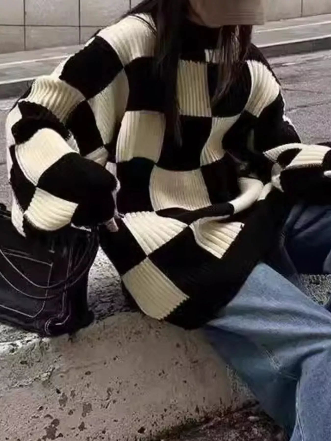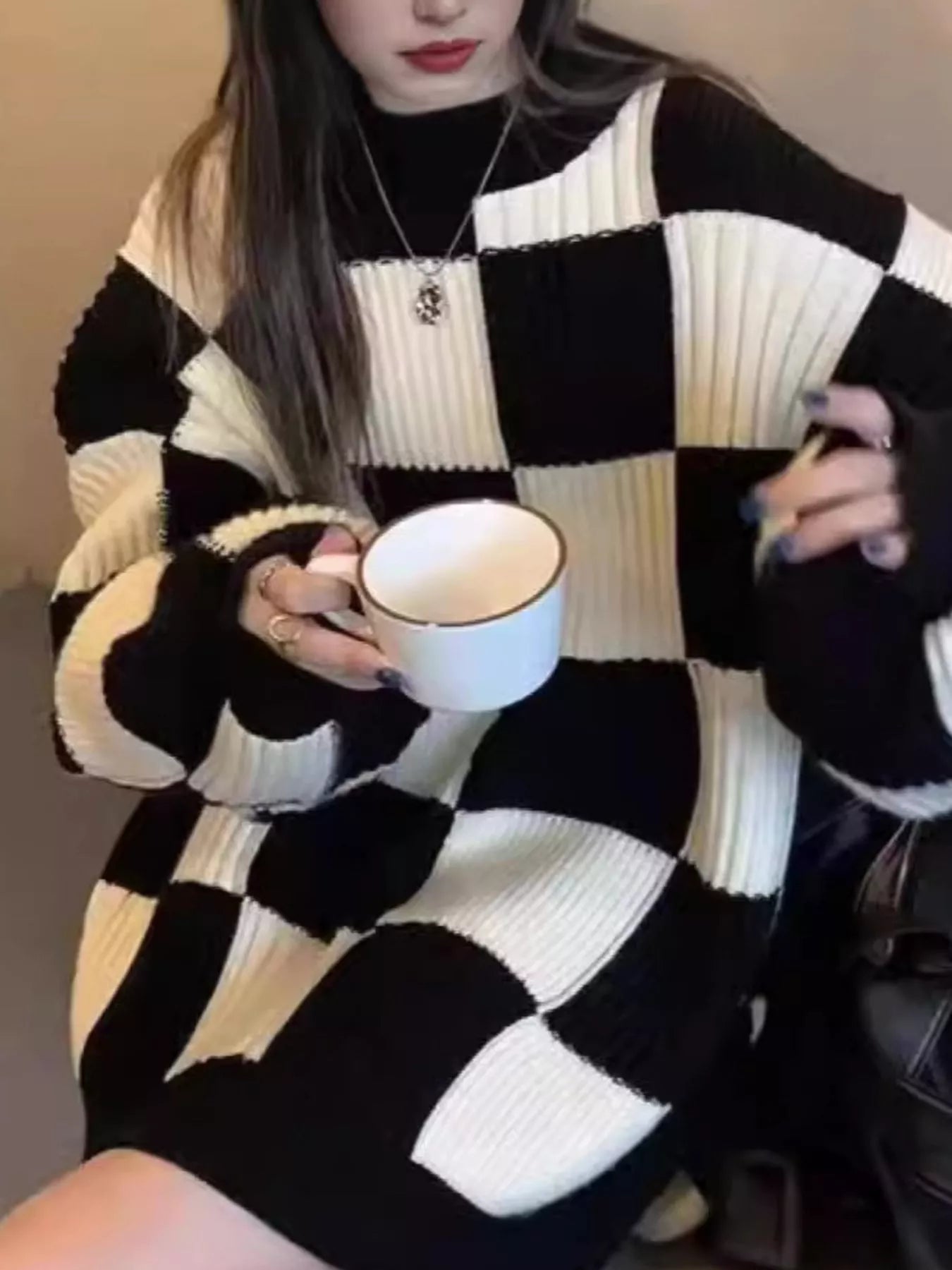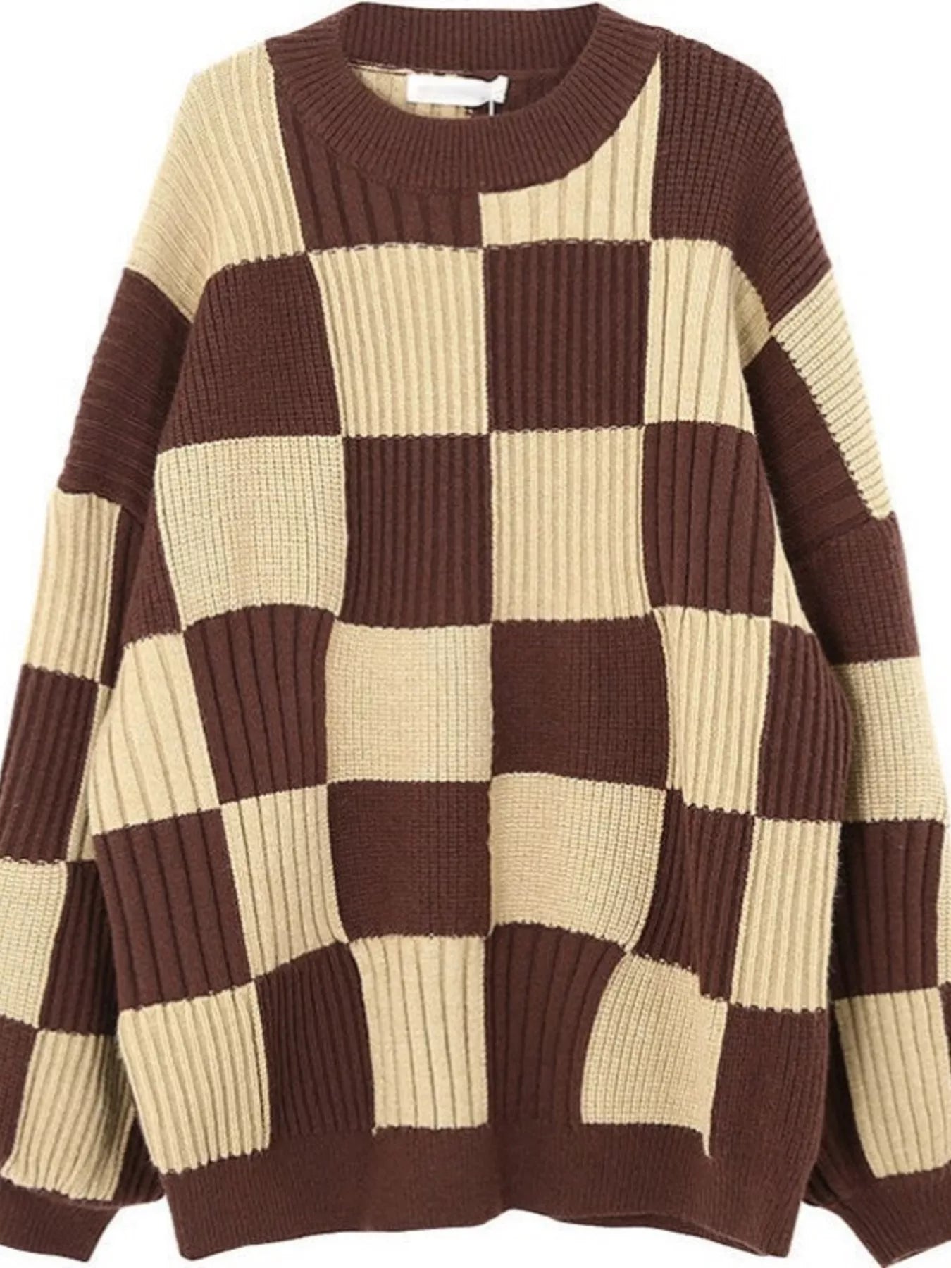 Checkerboard Pattern Oversized Sweater