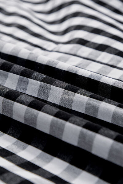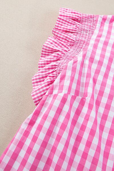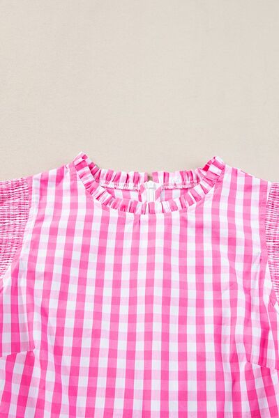 Checkered Ruffled Sleeve Frilled Neck Blouse