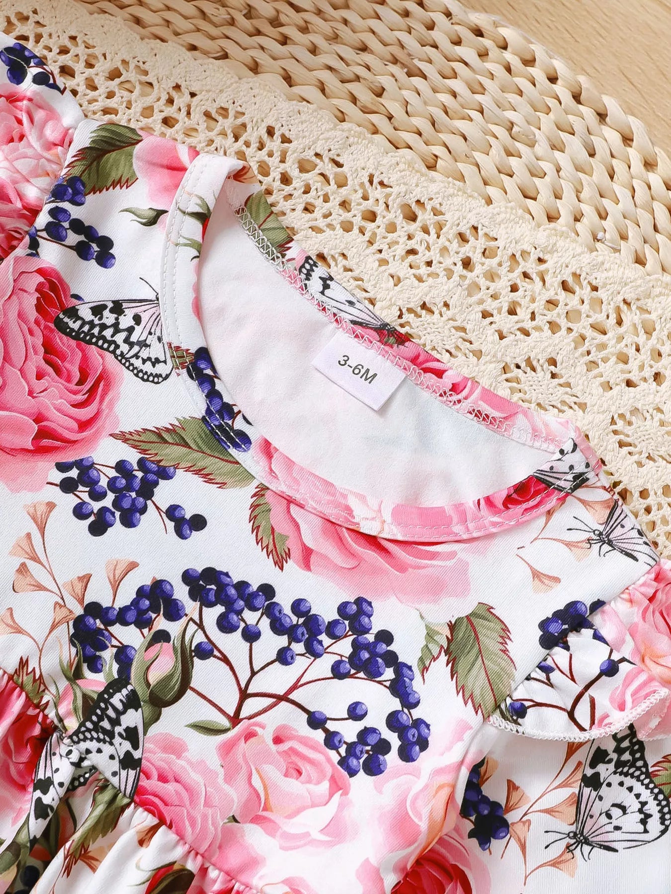 Children's Floral Ruffle Trim Top & Distressed Jeans Set