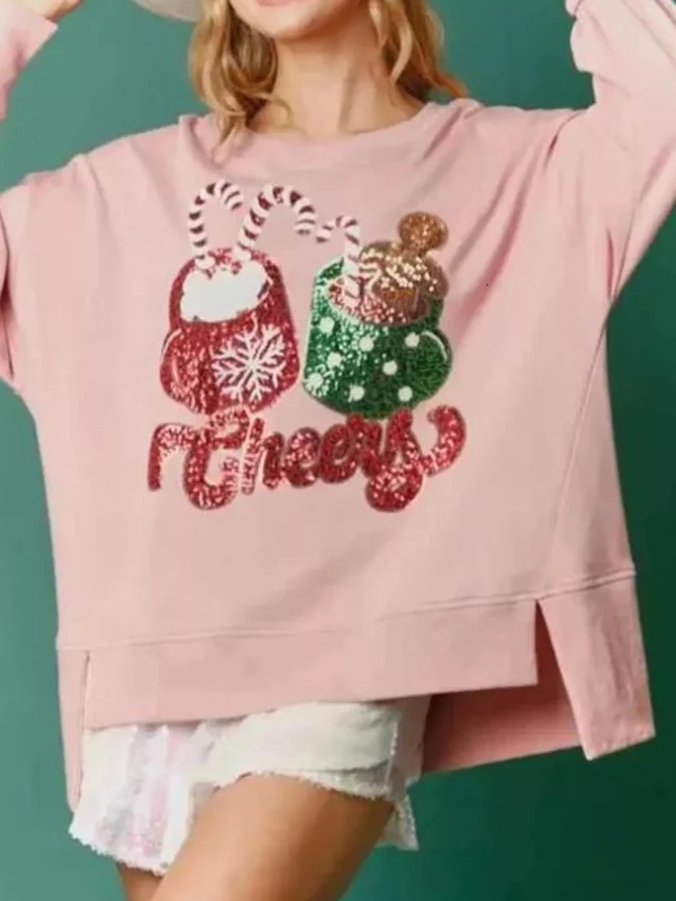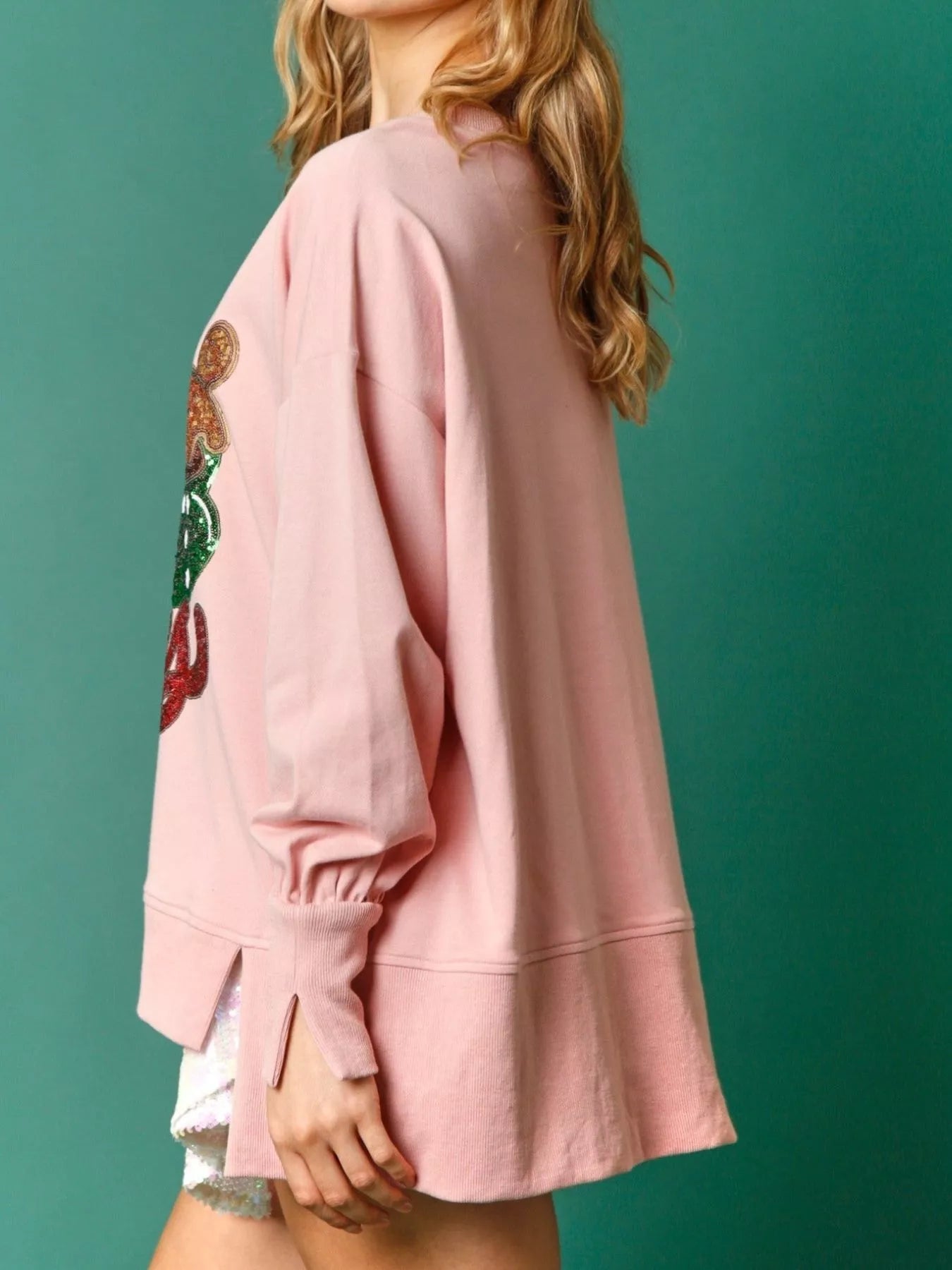Christmas Sequin High-Low Round Neck Sweatshirt