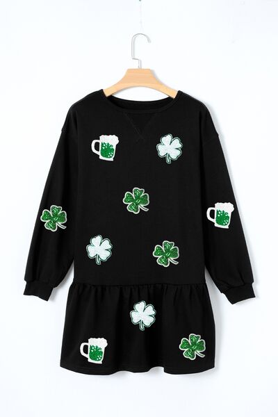 Clover Beer Patched Ruffle Hem Dress