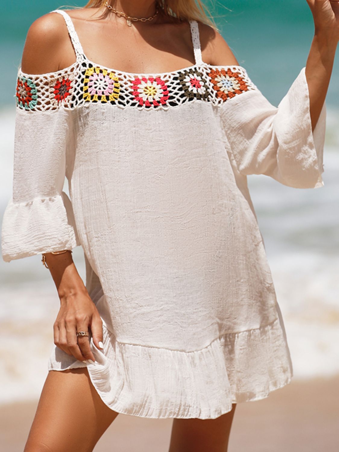 Crochet Cold Shoulder Three-Quarter Sleeve Cover Up