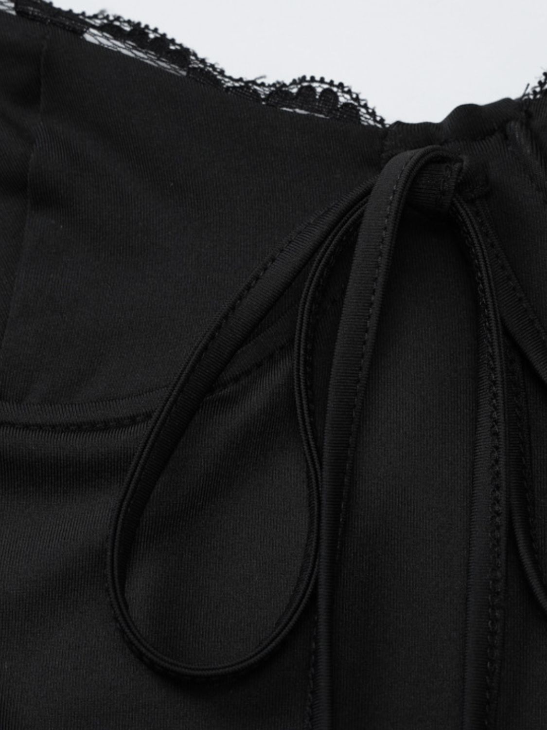 Devine Slit Lace Detail Sweetheart Neck Long Sleeve Maxi Dress