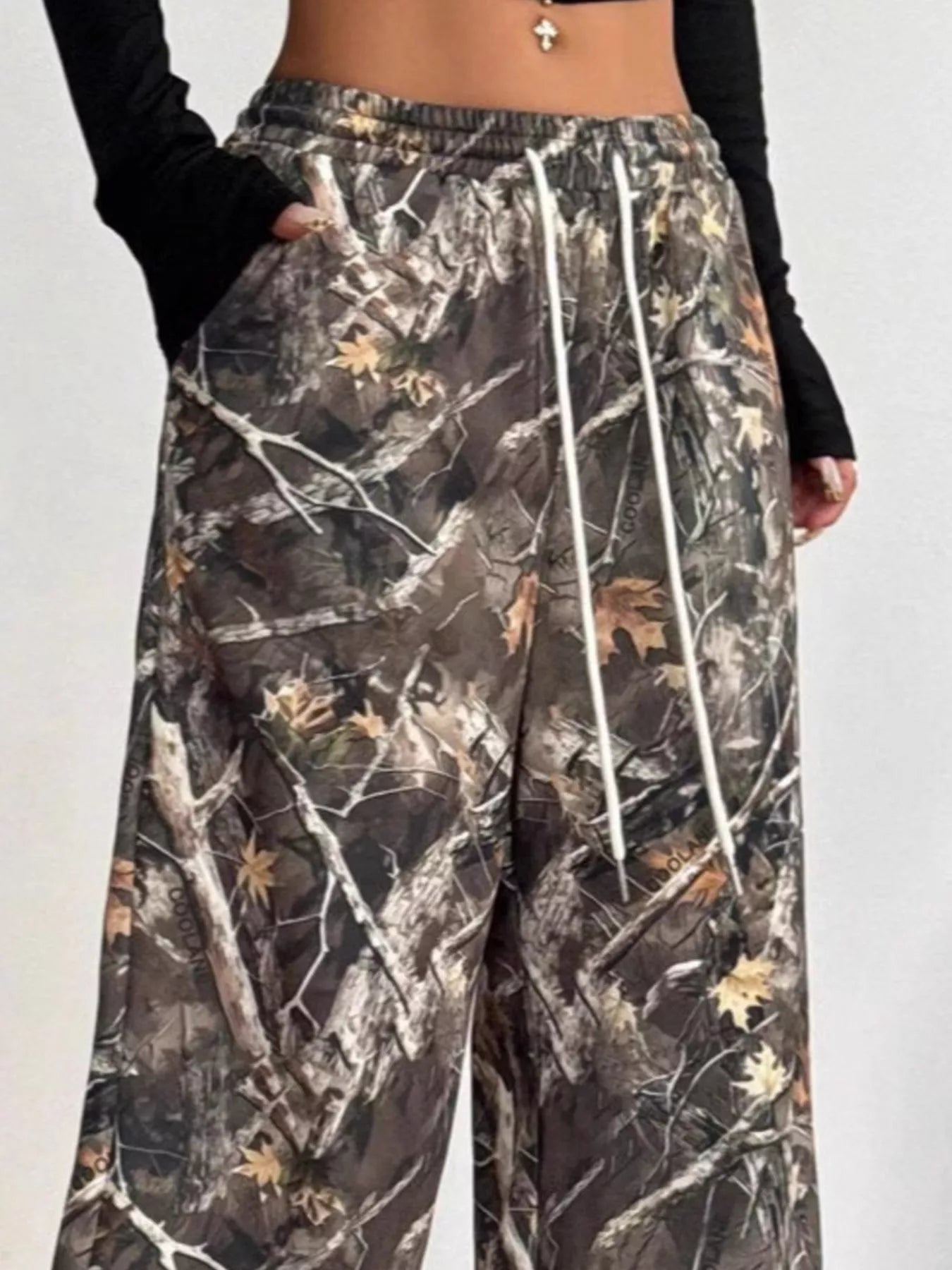 Floral Lace Patch Pocket Pleated Wide Leg Pants