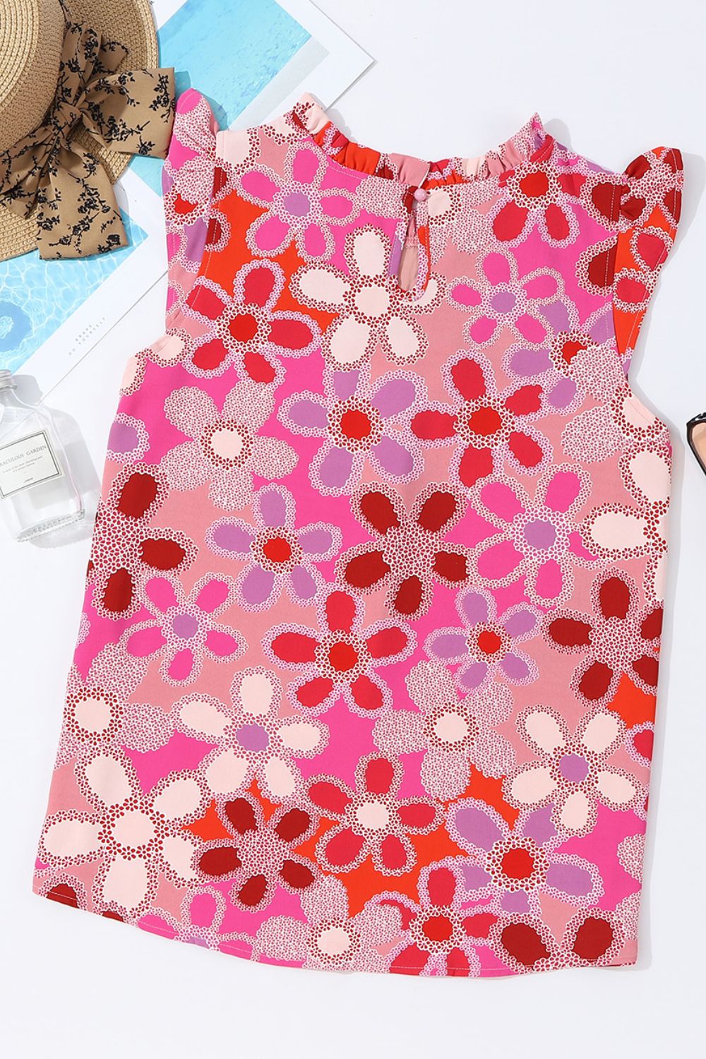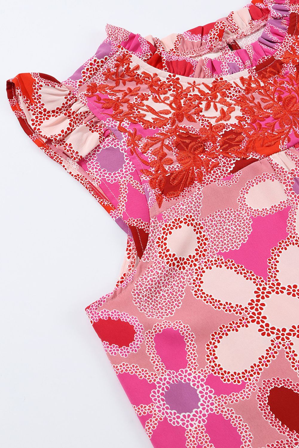 Embroidered Detail Floral Ruffle Cap Sleeve Blouse