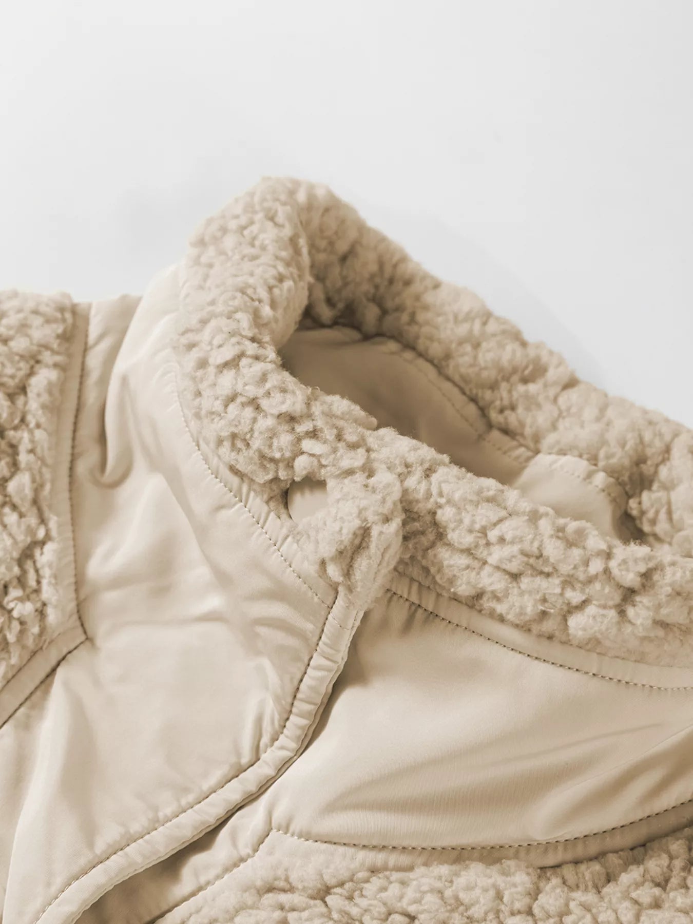 Faux Fur Snap Button Front Knot Side Plush Vest with Pockets