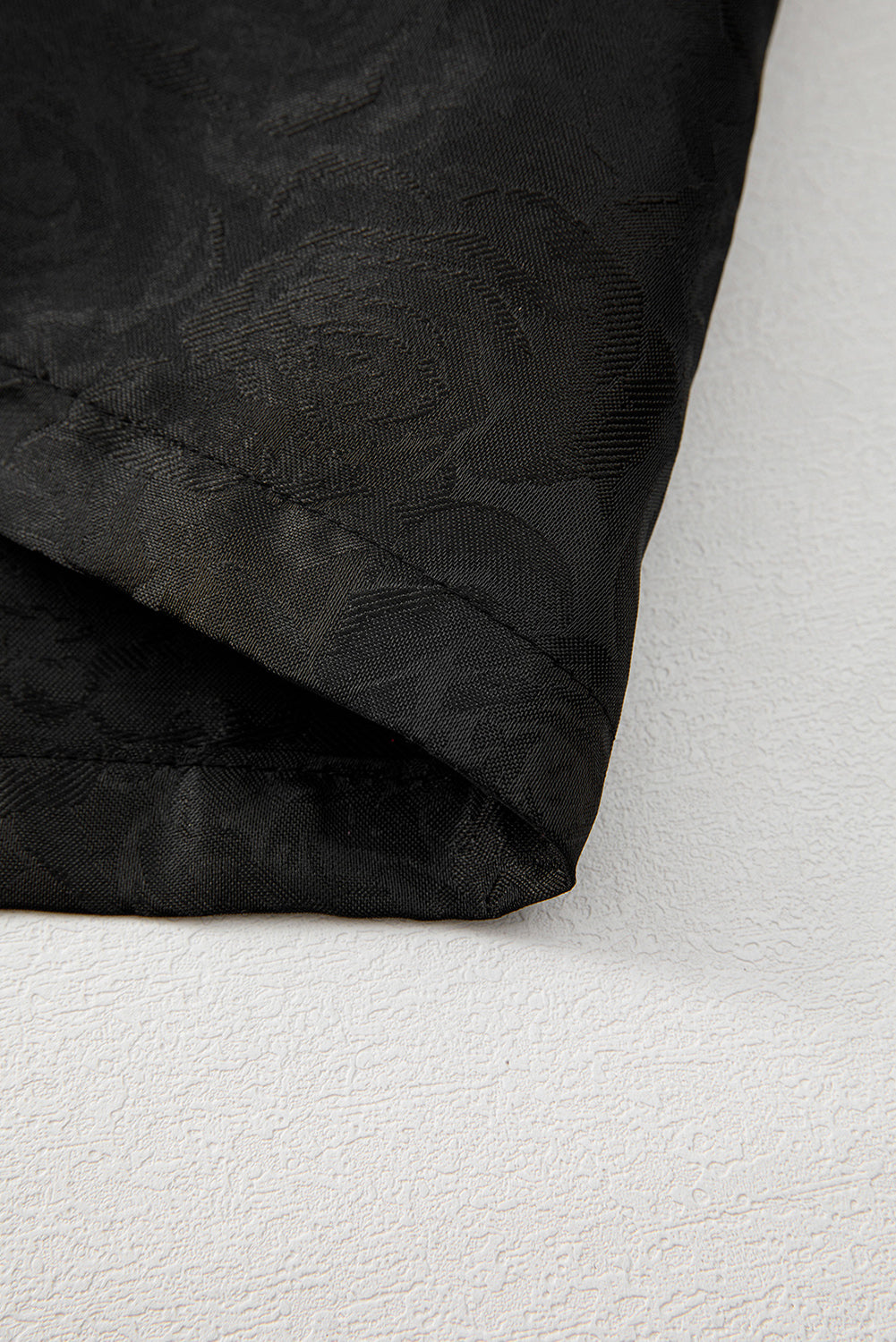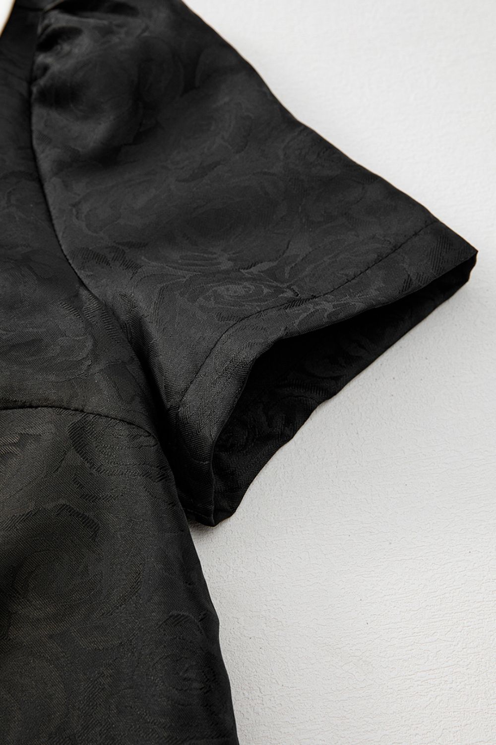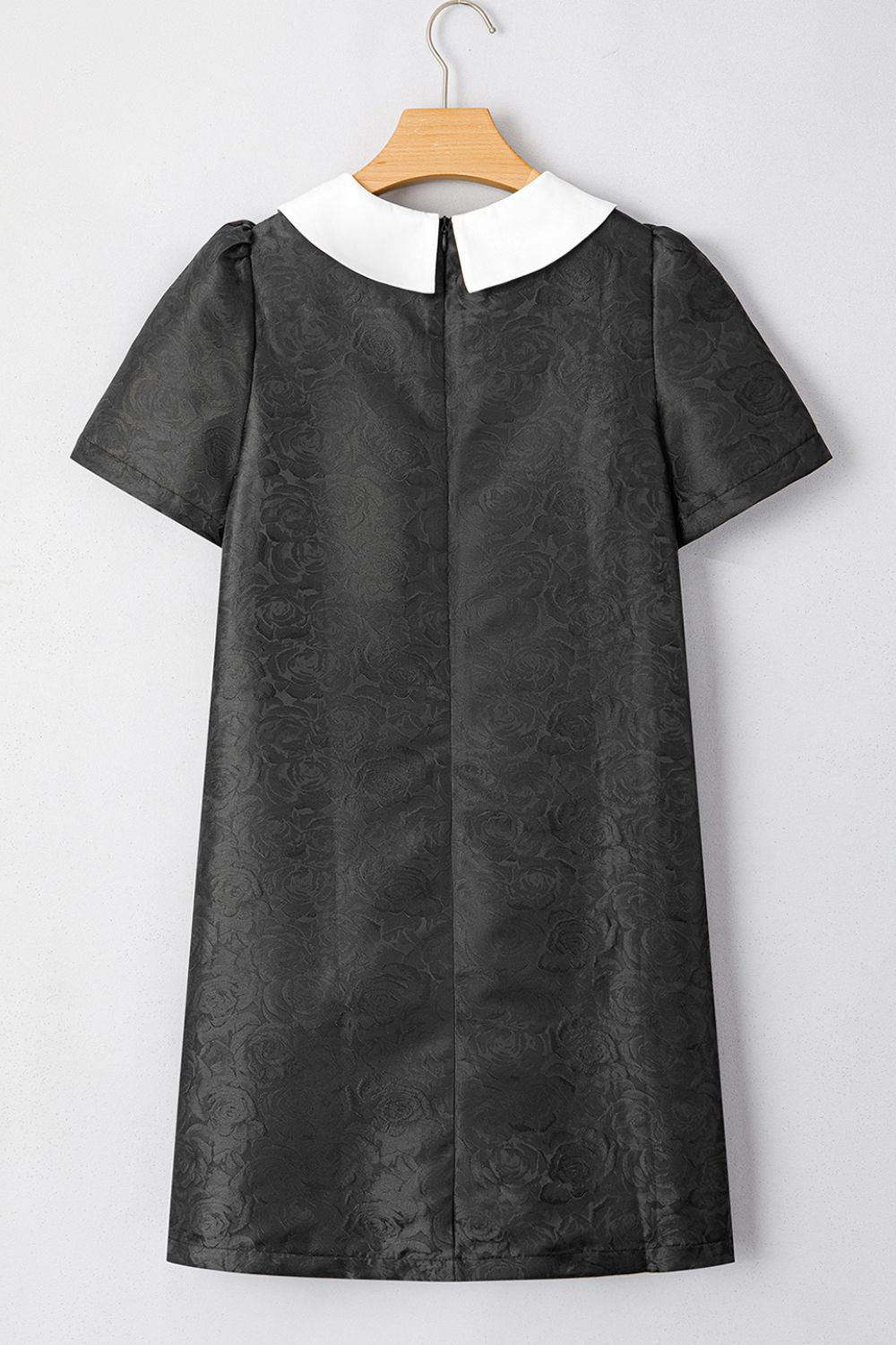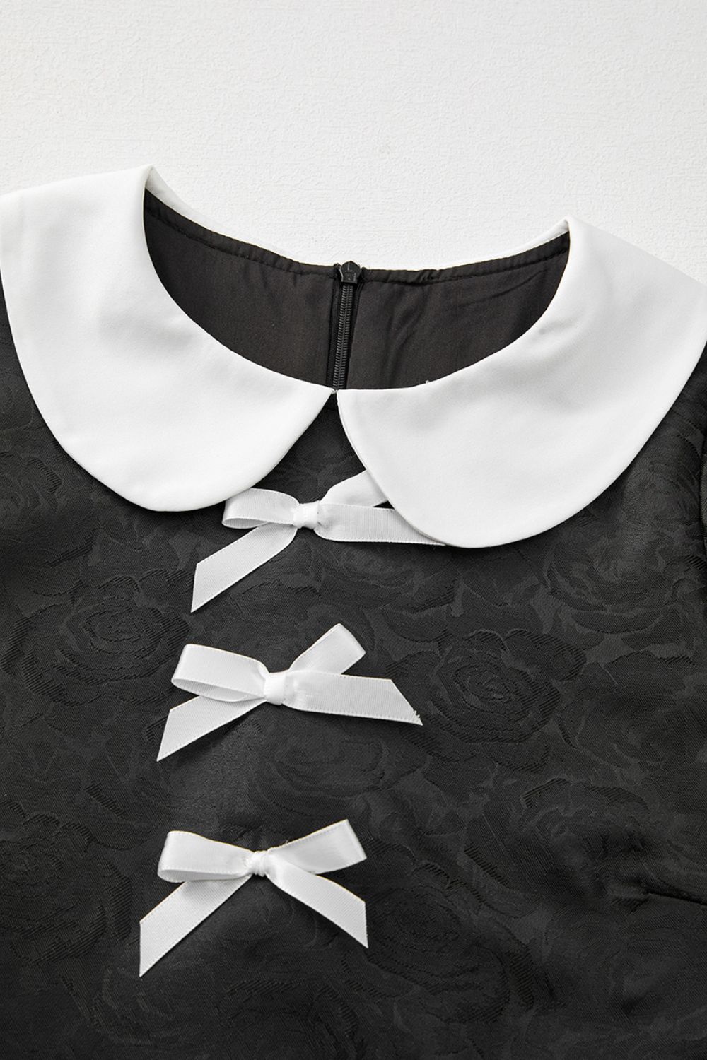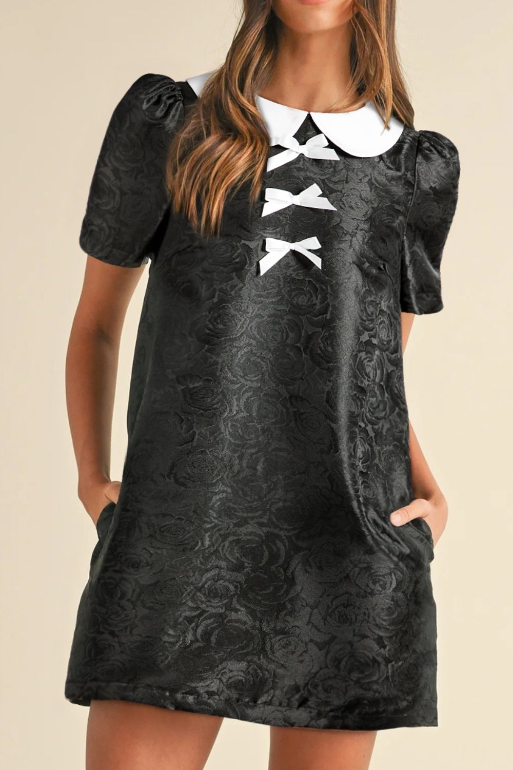 Floral Embossed Puff Sleeve Colorblock Bow Collared Mini Dress