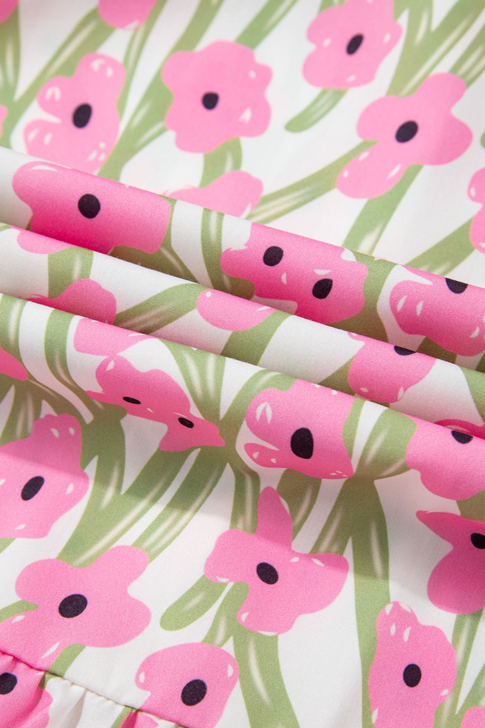 Floral Print Square Neck Ruffled Cap Sleeve Maxi Dress