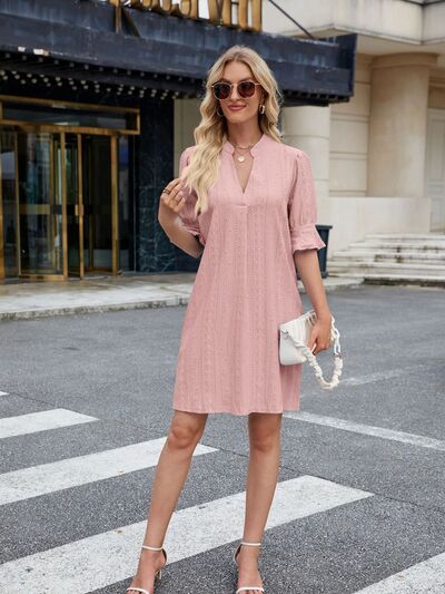 Pearl Embellished Keyhole Ribbed Sweater Dress