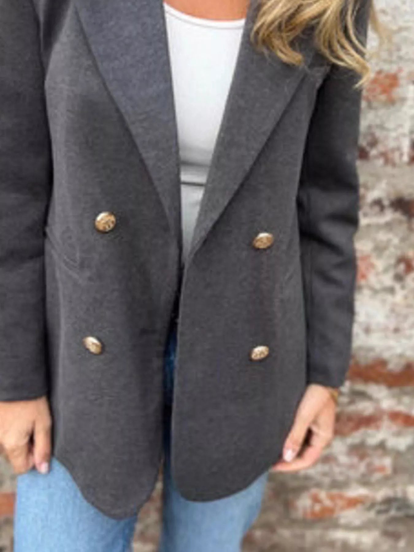 Full Size Double Breasted Long Sleeve Blazer Plus Size