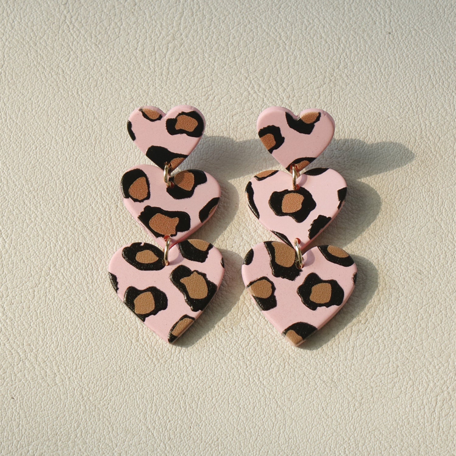 Heart & Leopard Acrylic Stainless Steel Earrings