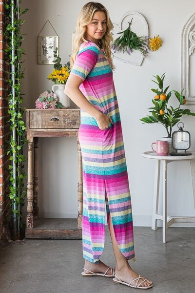 Heimish Full Size Striped Short Sleeve Maxi Tee Dress Plus Size