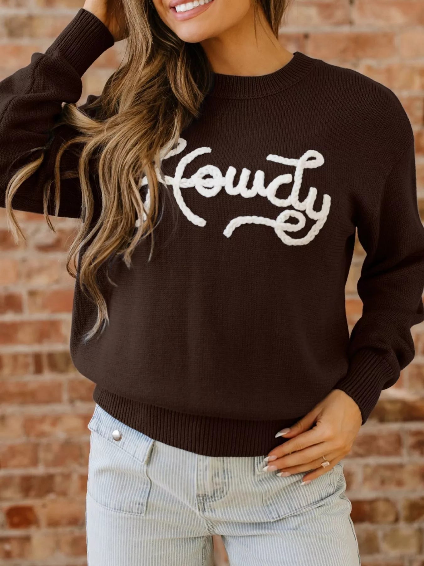 Howdy Embroidered Graphic Western Sweater