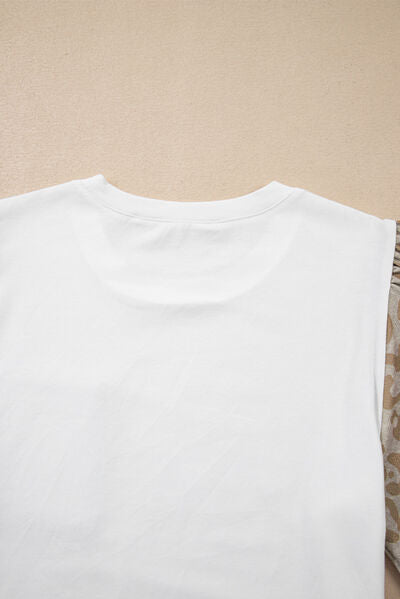 Leopard Patchwork Crochet Lace Trim Puff Sleeve T Shirt