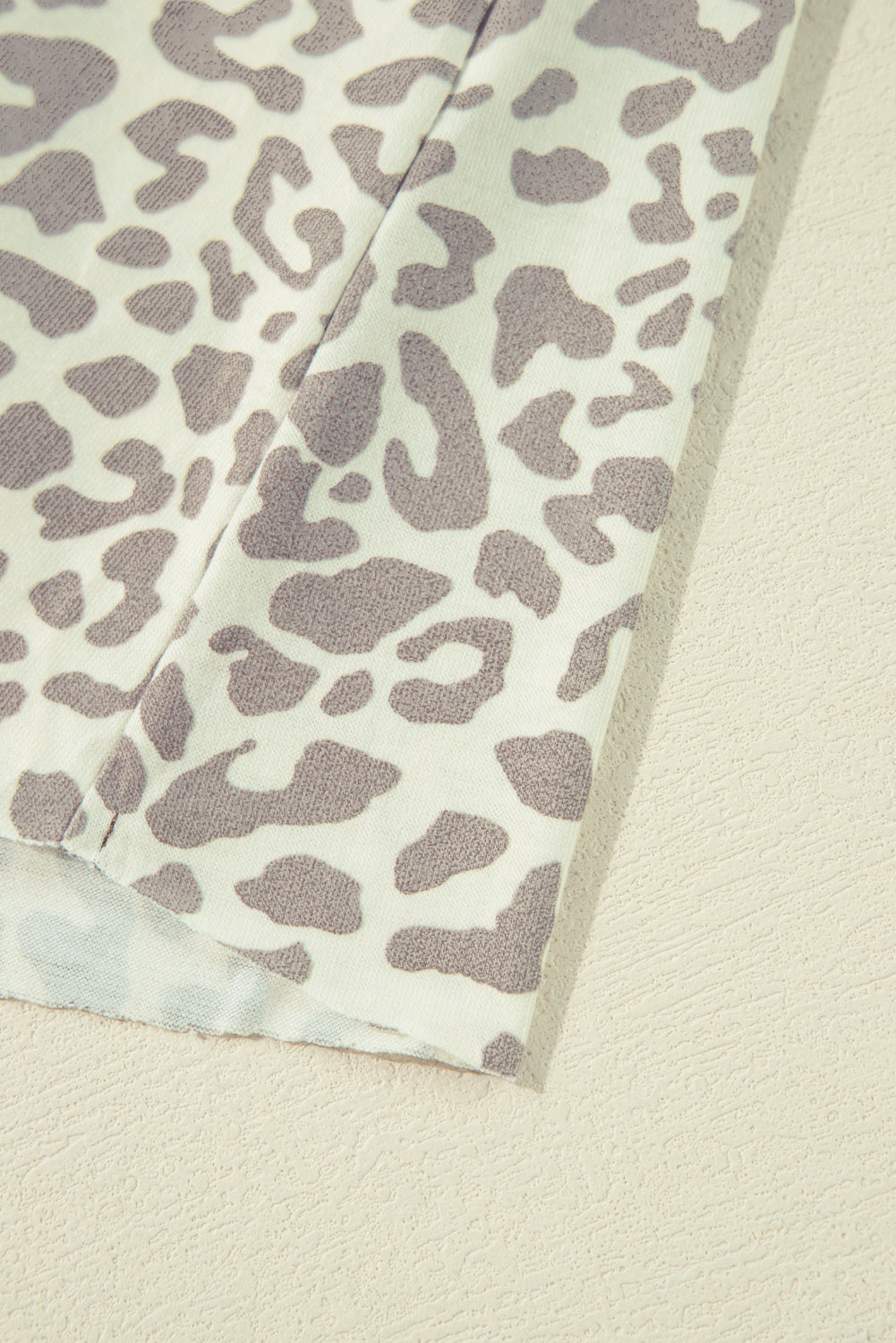 Leopard Ribbed Patchwork Drawstring Hoodie