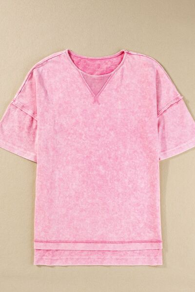 Mineral Wash Drop Shoulder Round Neck T-Shirt