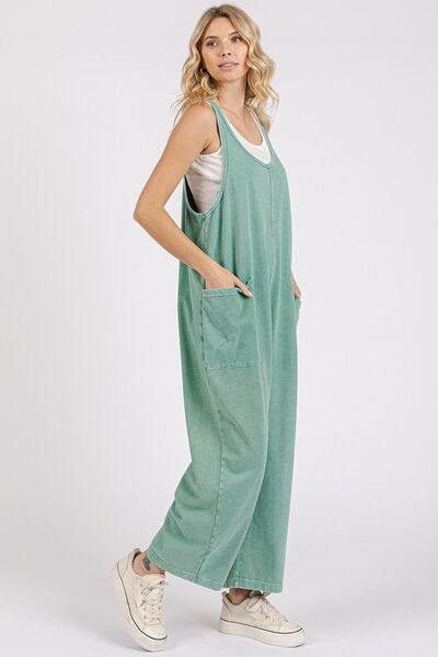 The Scoop Neck Wide Leg Overalls are a fashionable and versatile wardrobe piece. The scoop neck adds a touch of femininity to the overalls, while the wide leg design offers a flattering and comfortable silhouette. These overalls are perfect for creating a chic and effortless look, whether you pair them with a simple t-shirt for a casual outing or dress them up with a stylish blouse for a more dressed-up ensemble. The wide leg style adds a trendy flair to your outfit, making these overalls a versatile and stylish choice for any occasion.