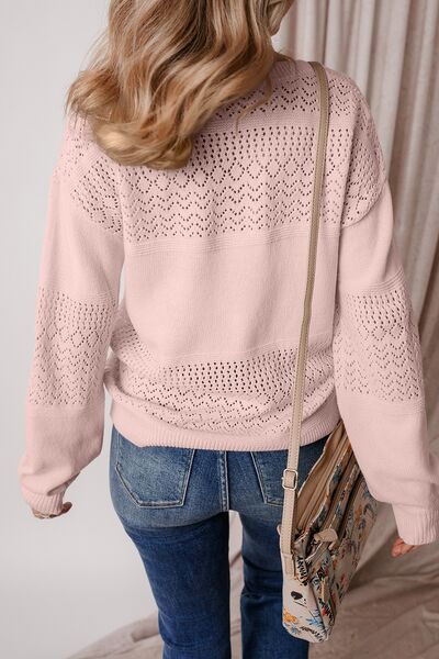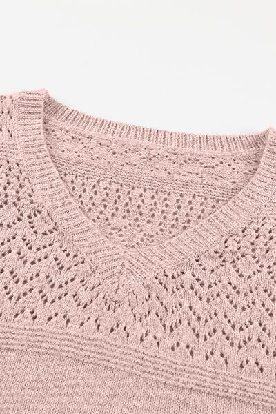 Openwork V-Neck Long Sleeve Sweater