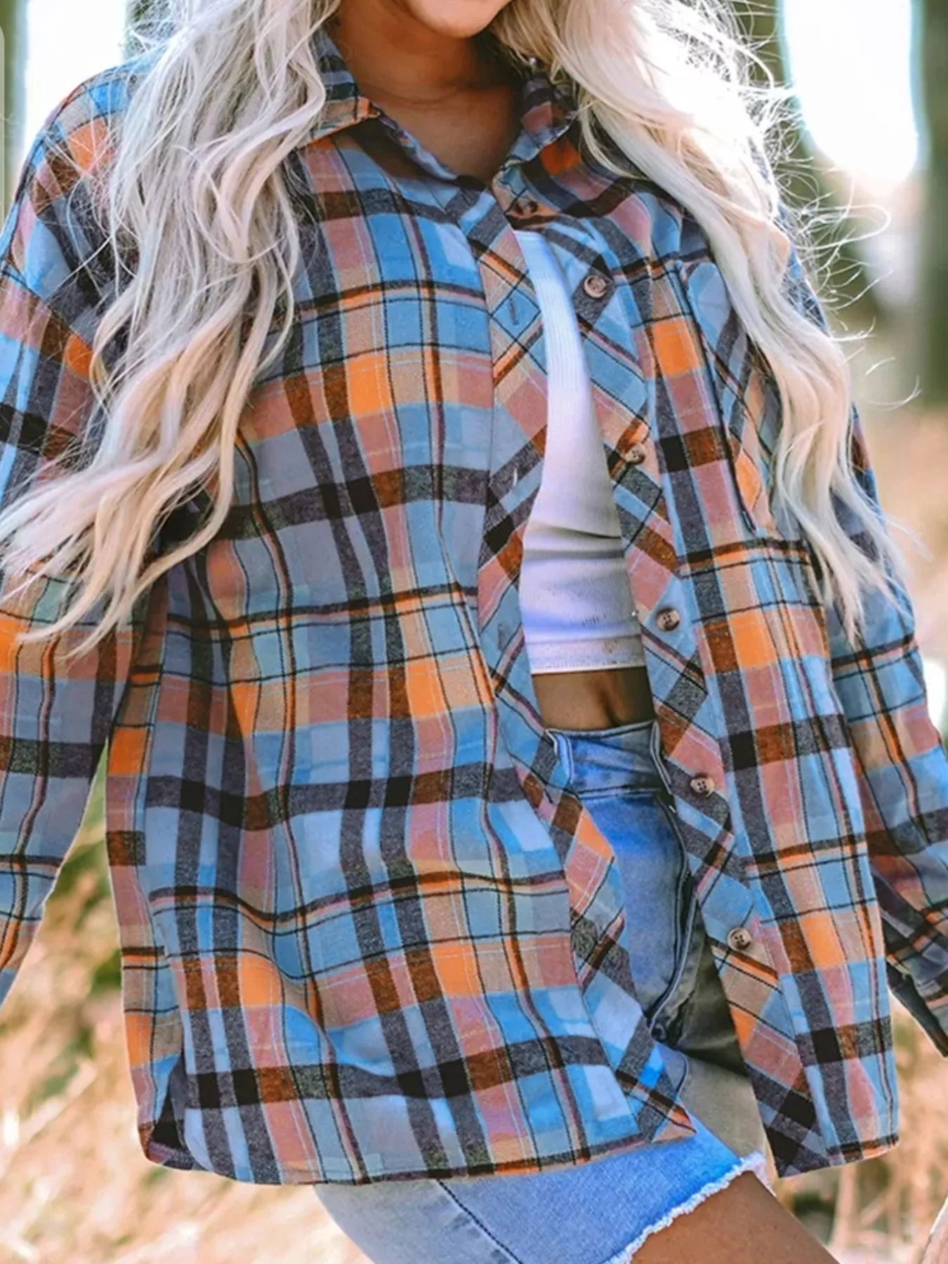 Plaid Button-Up Long Sleeve Shirt