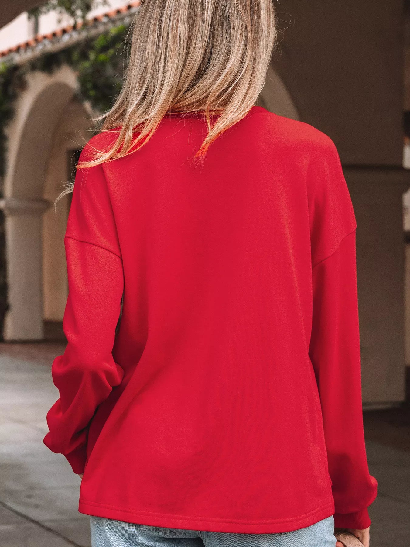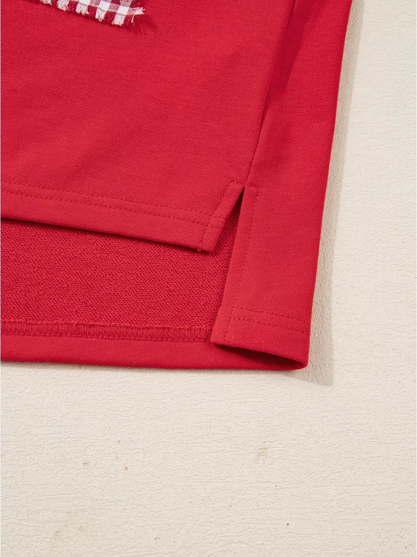 Plaid Frayed Double Christmas Tree Patched Drop Shoulder Sweatshirt