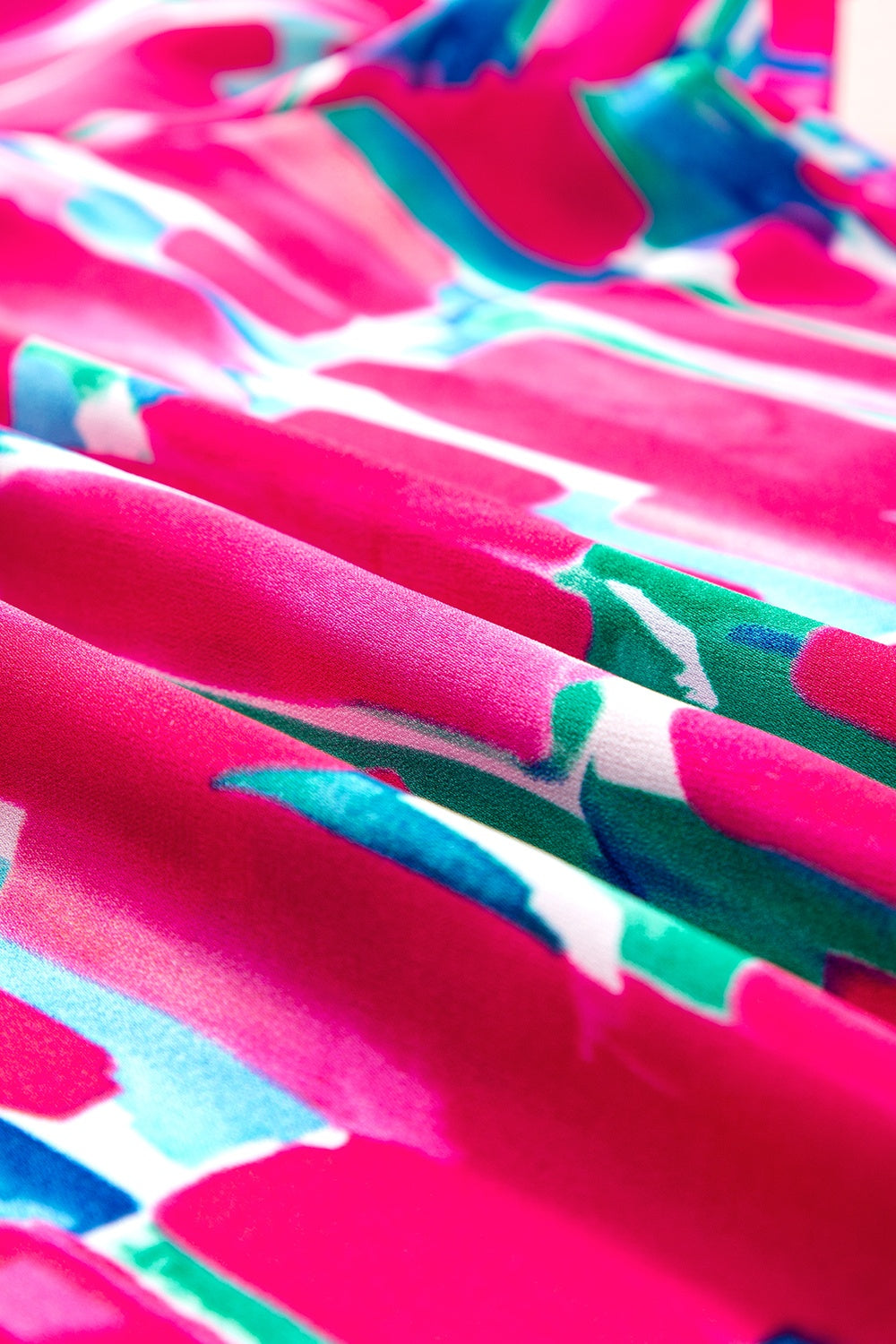 Plus Size Printed Round Neck Petal Sleeve Blouse