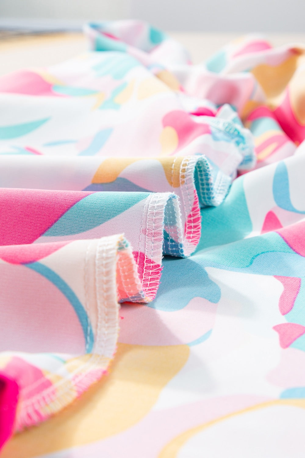 Plus Size Ruffled Printed Notched Cap Sleeve Blouse