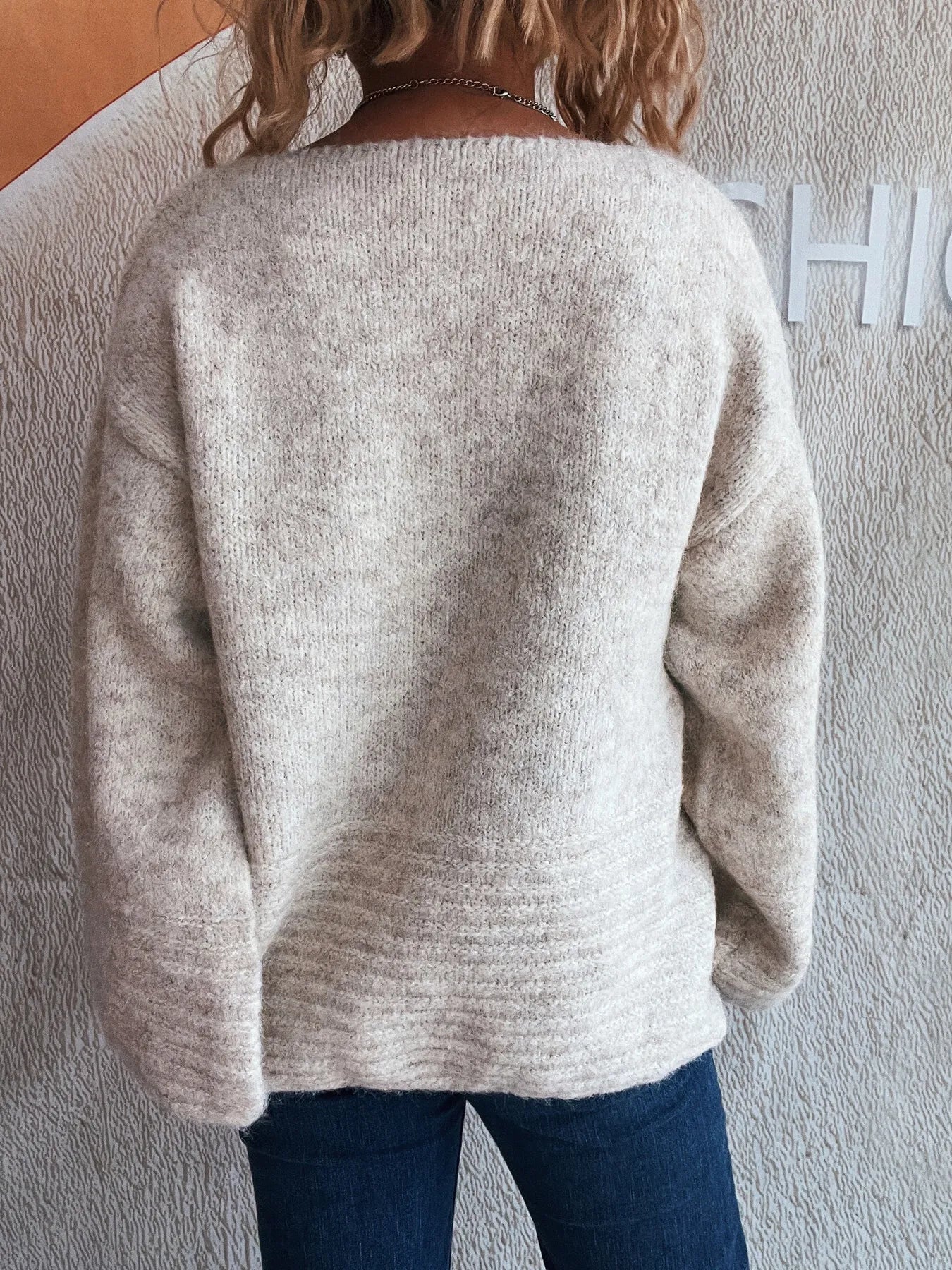 Pearl Embellished Keyhole Ribbed Sweater Dress