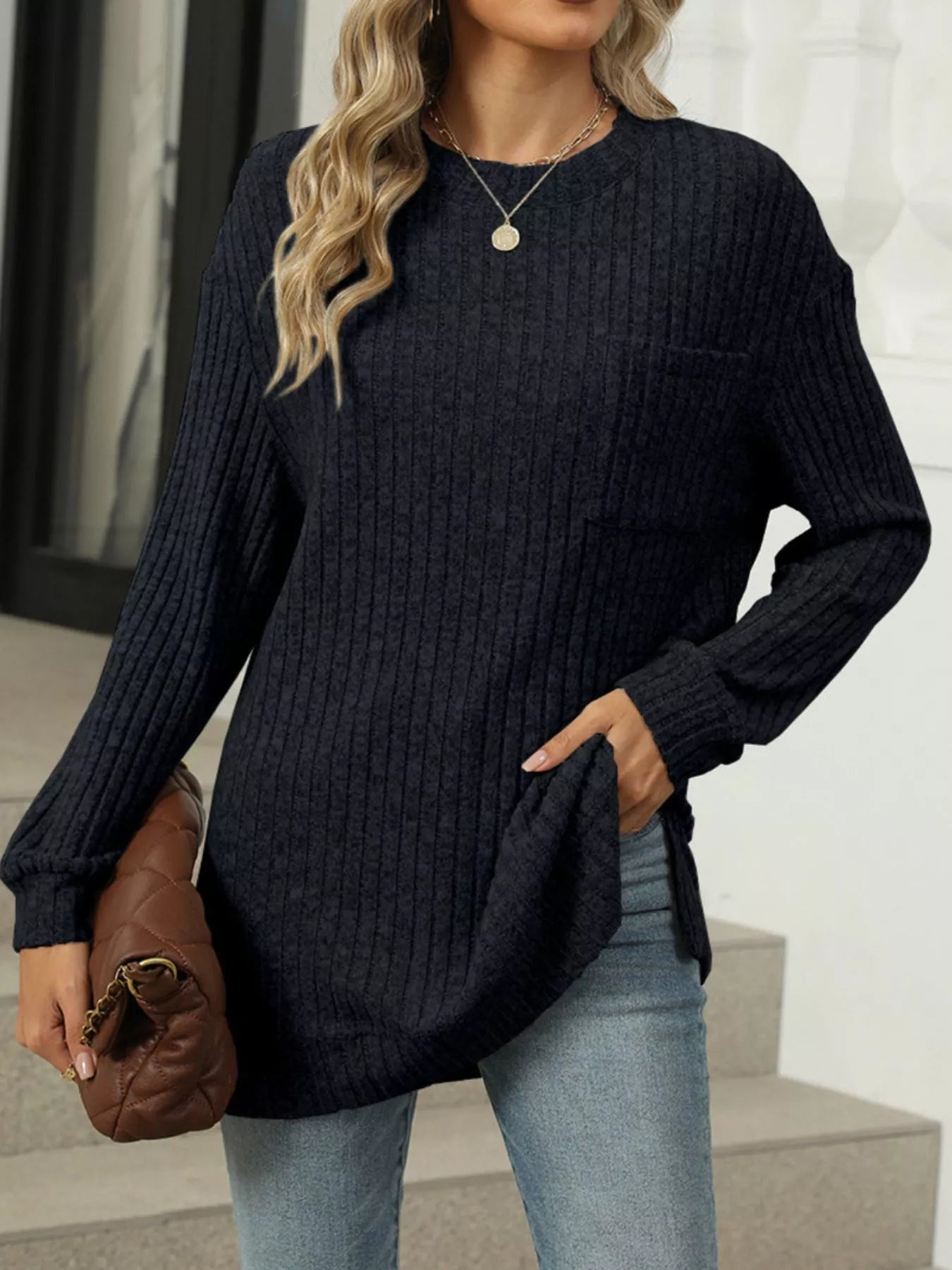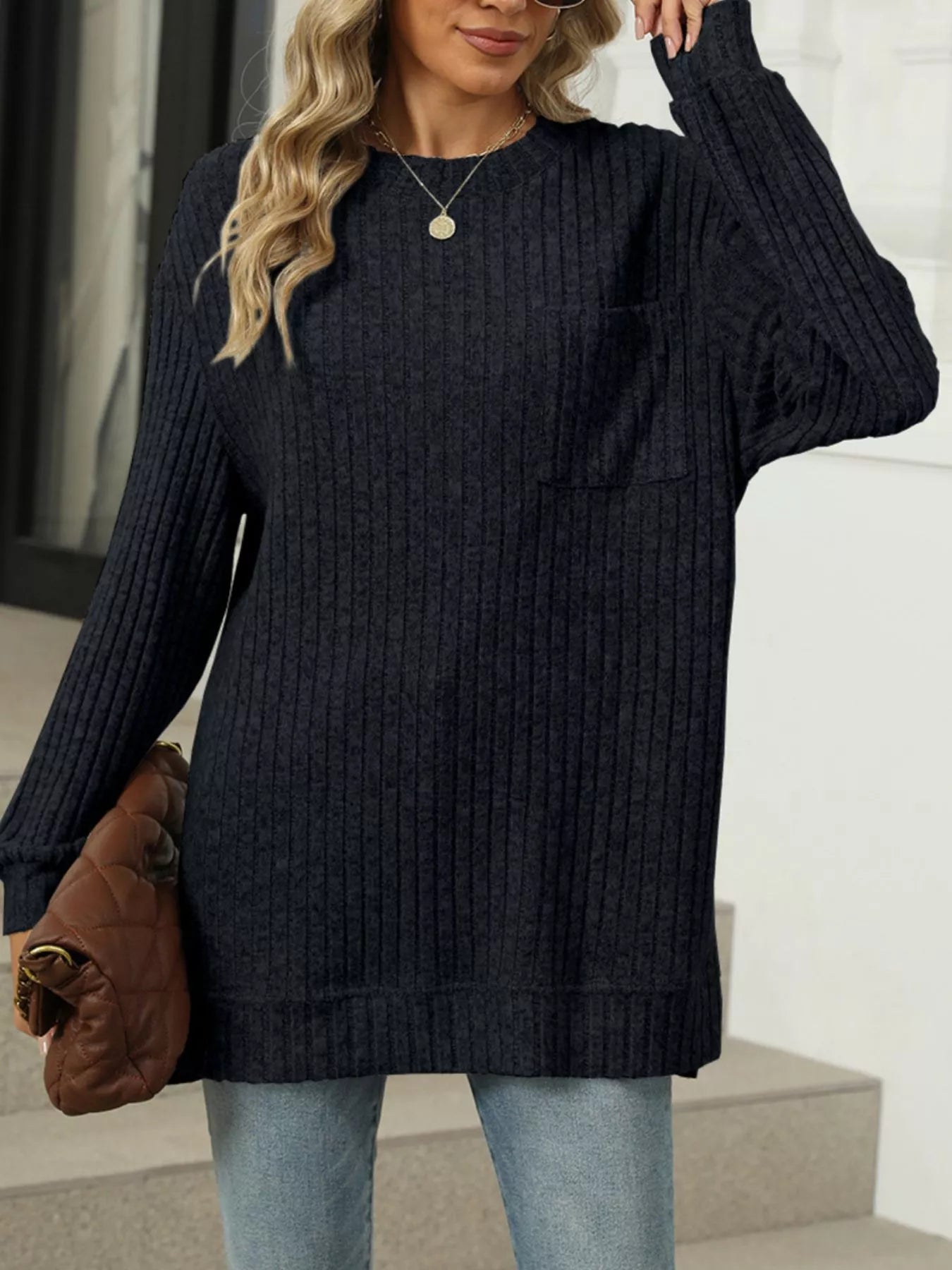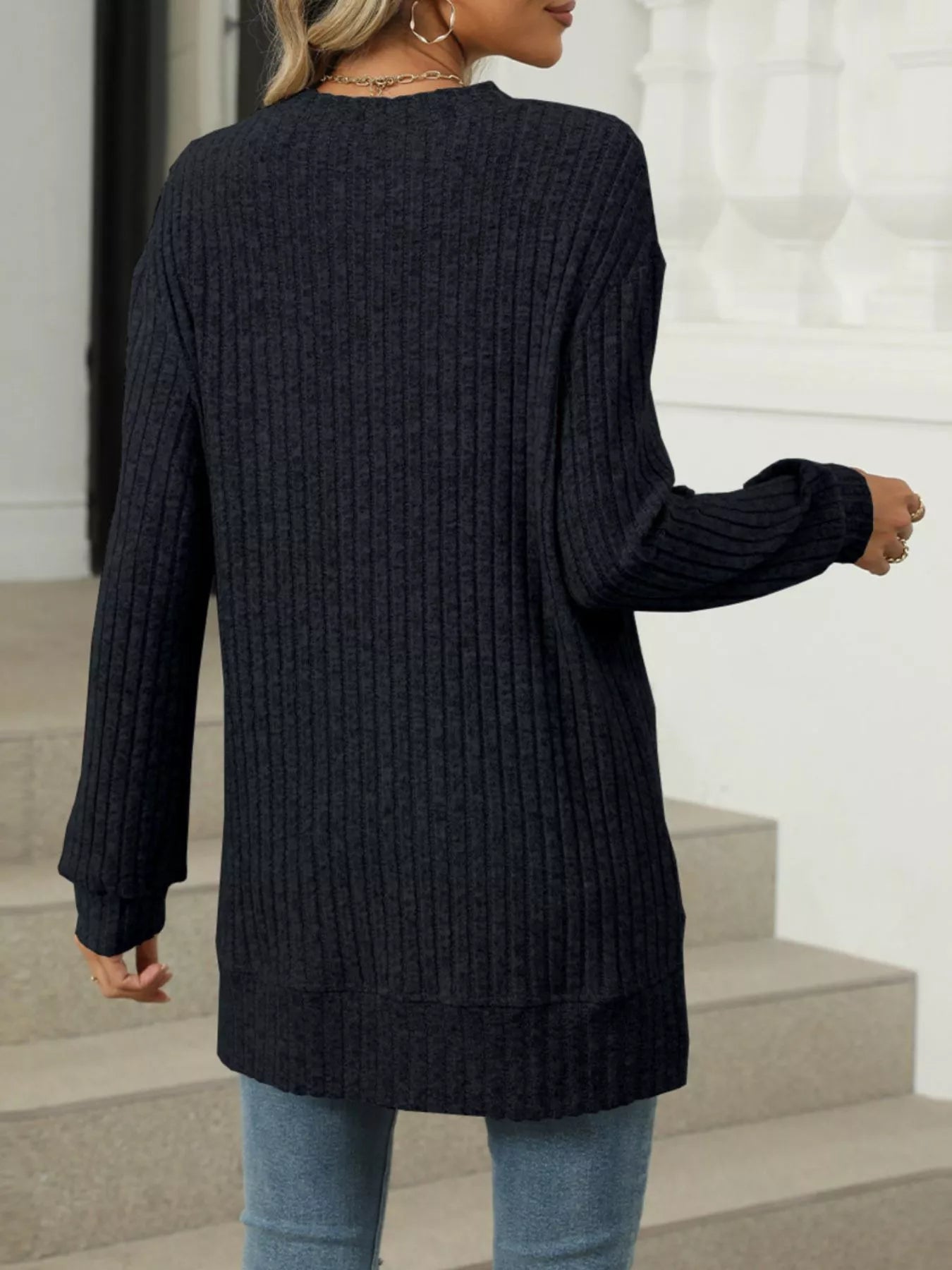 Pearl Embellished Keyhole Ribbed Sweater Dress