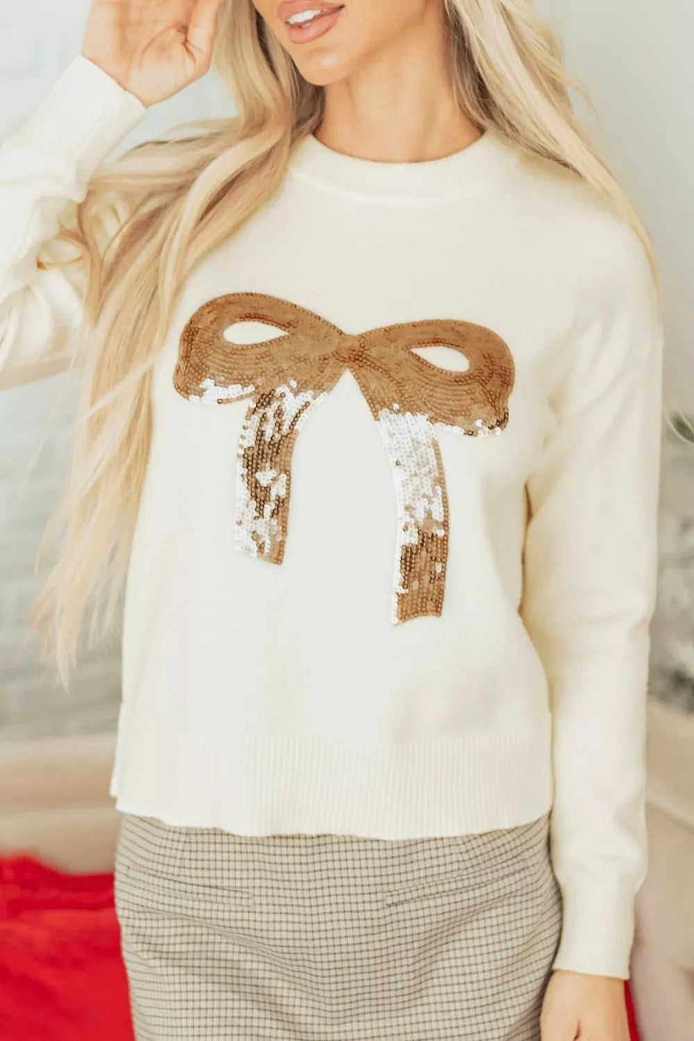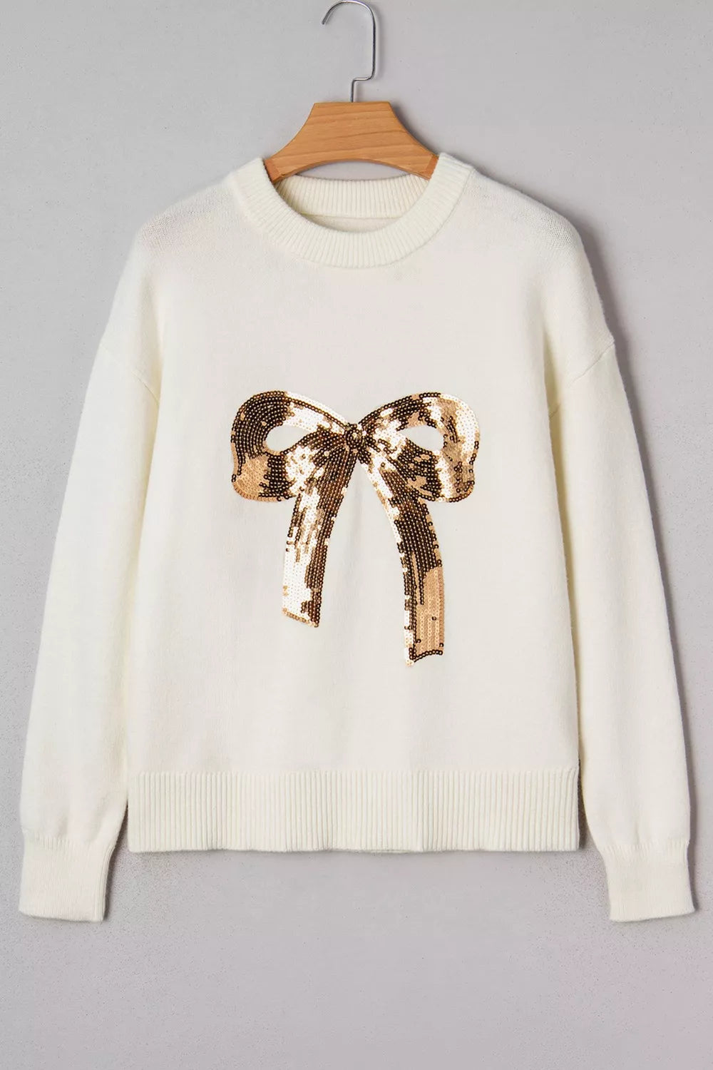 Sequin Bow Embellished Pullover Sweater