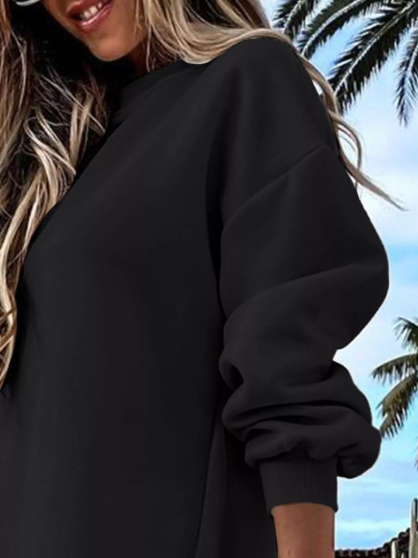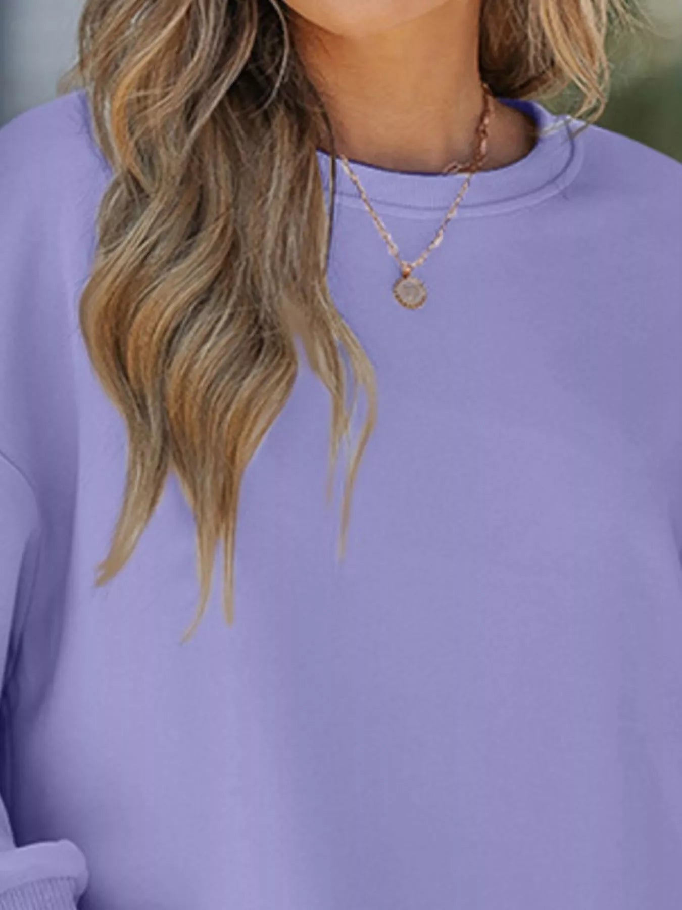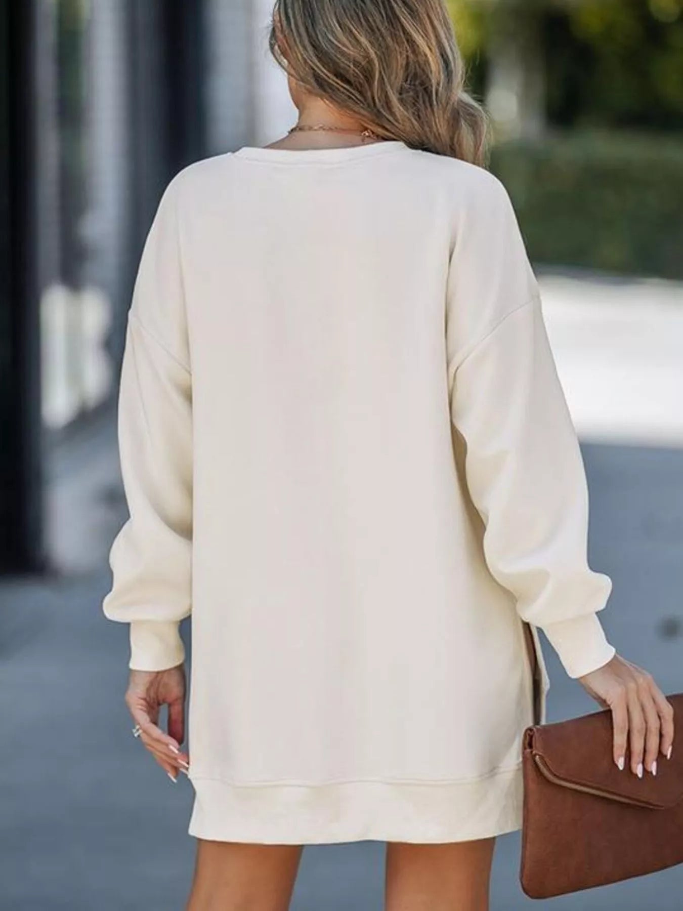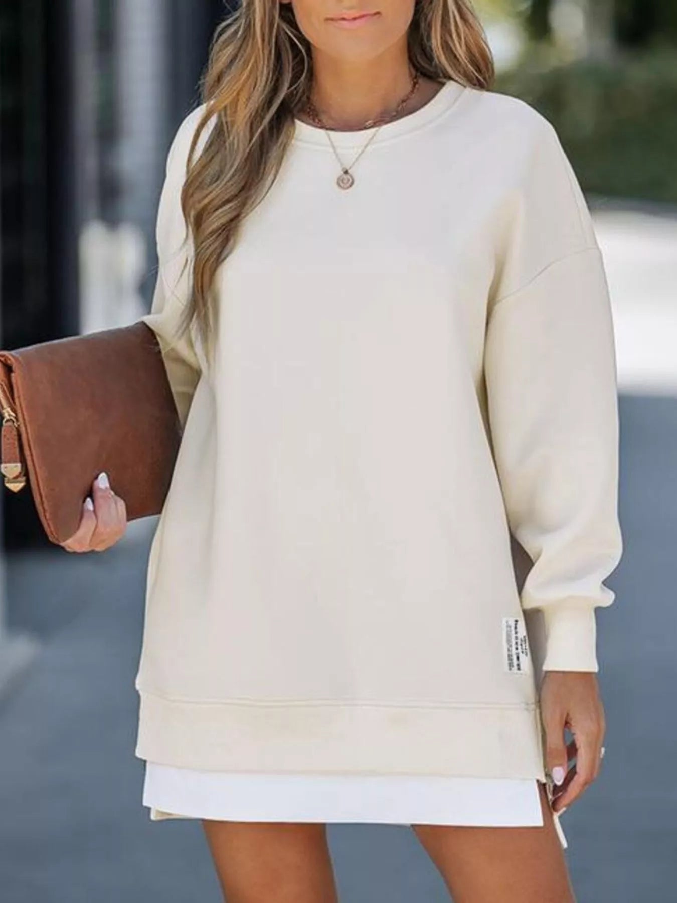 Side Slit Round Neck Long Sleeve Sweatshirt