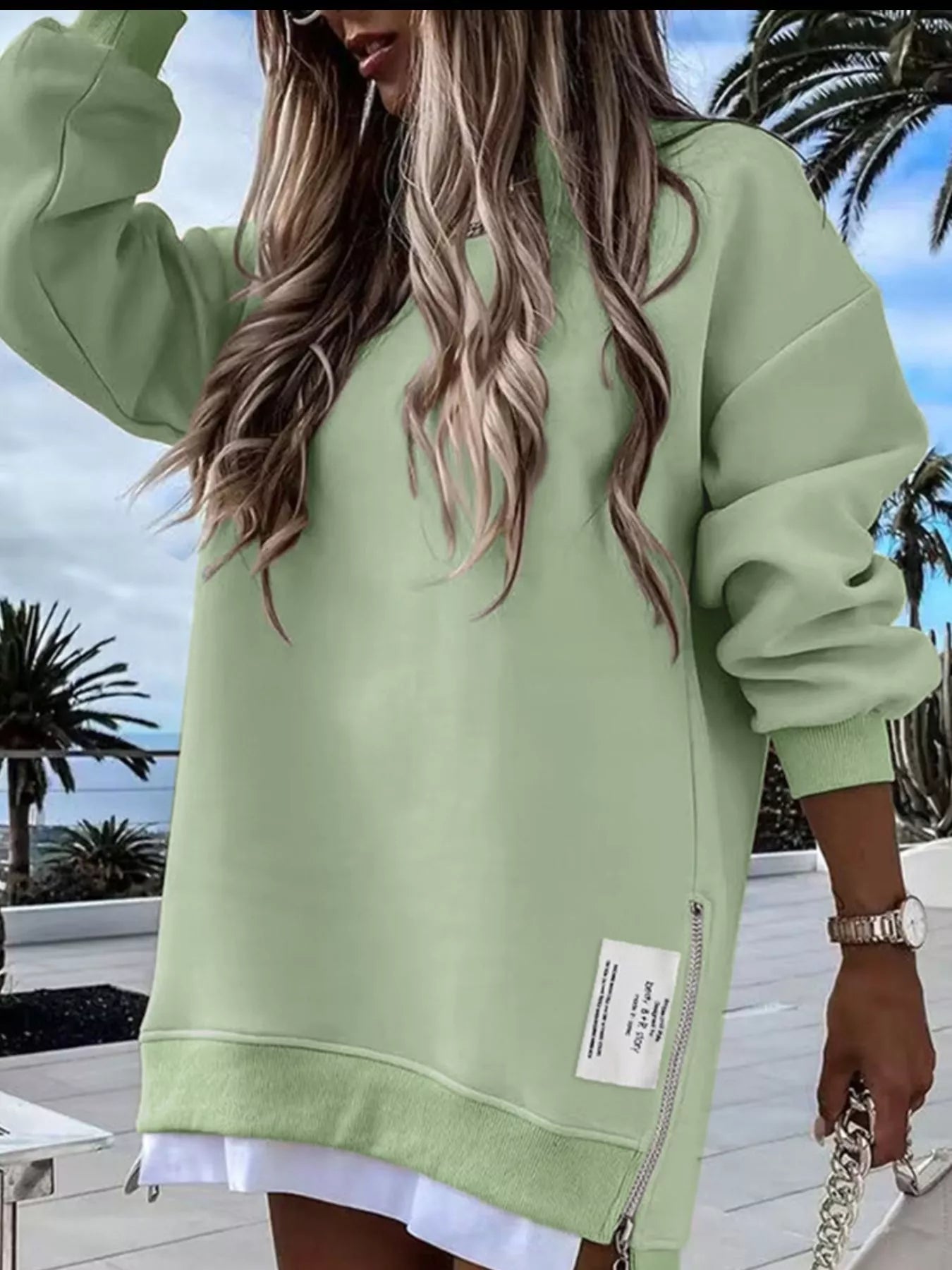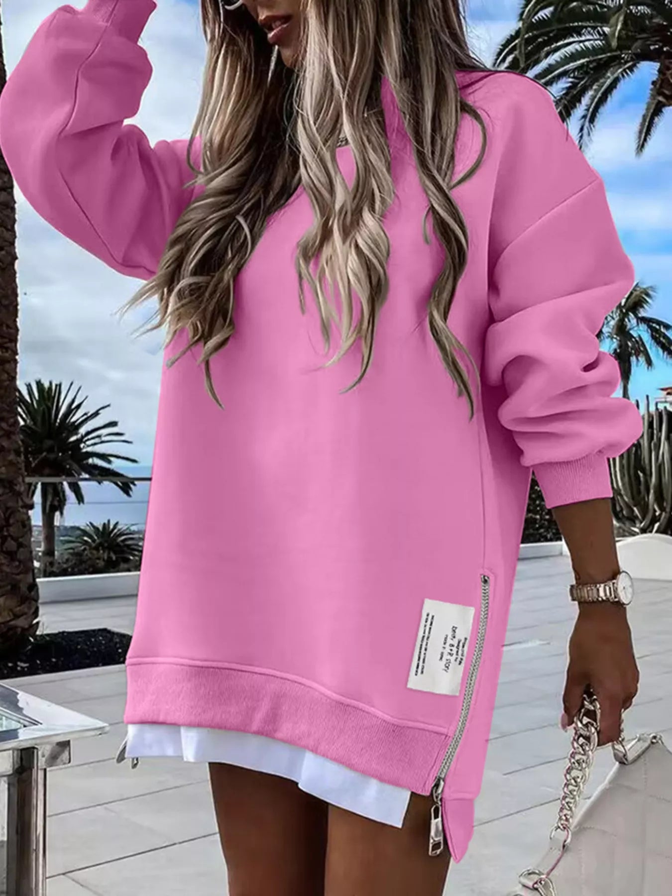 • Features:Oversized,Zipper,Slit