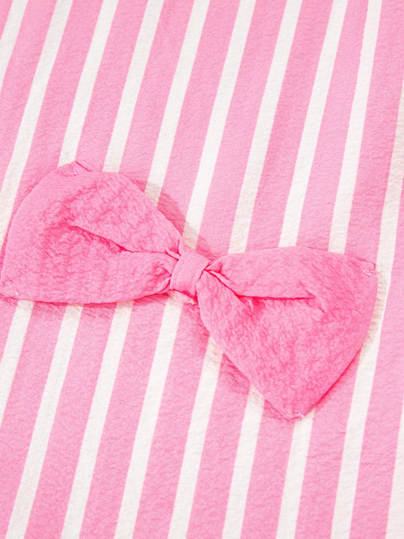 Stripe Buttoned Front Long Sleeve Top and Pants 2 Piece Sleepwear
