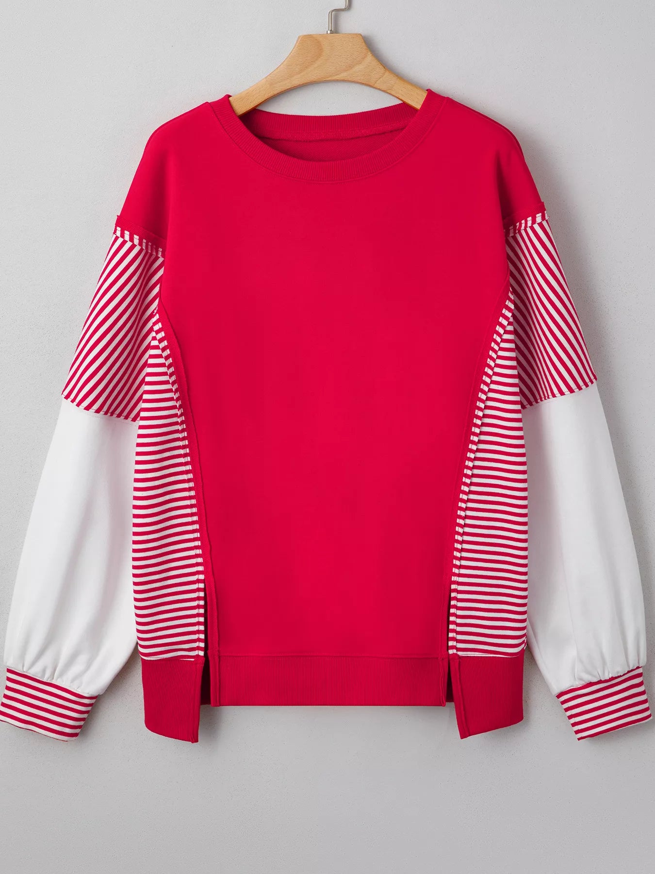 Striped Patchwork Sleeve Colorblock Sweatshirt
