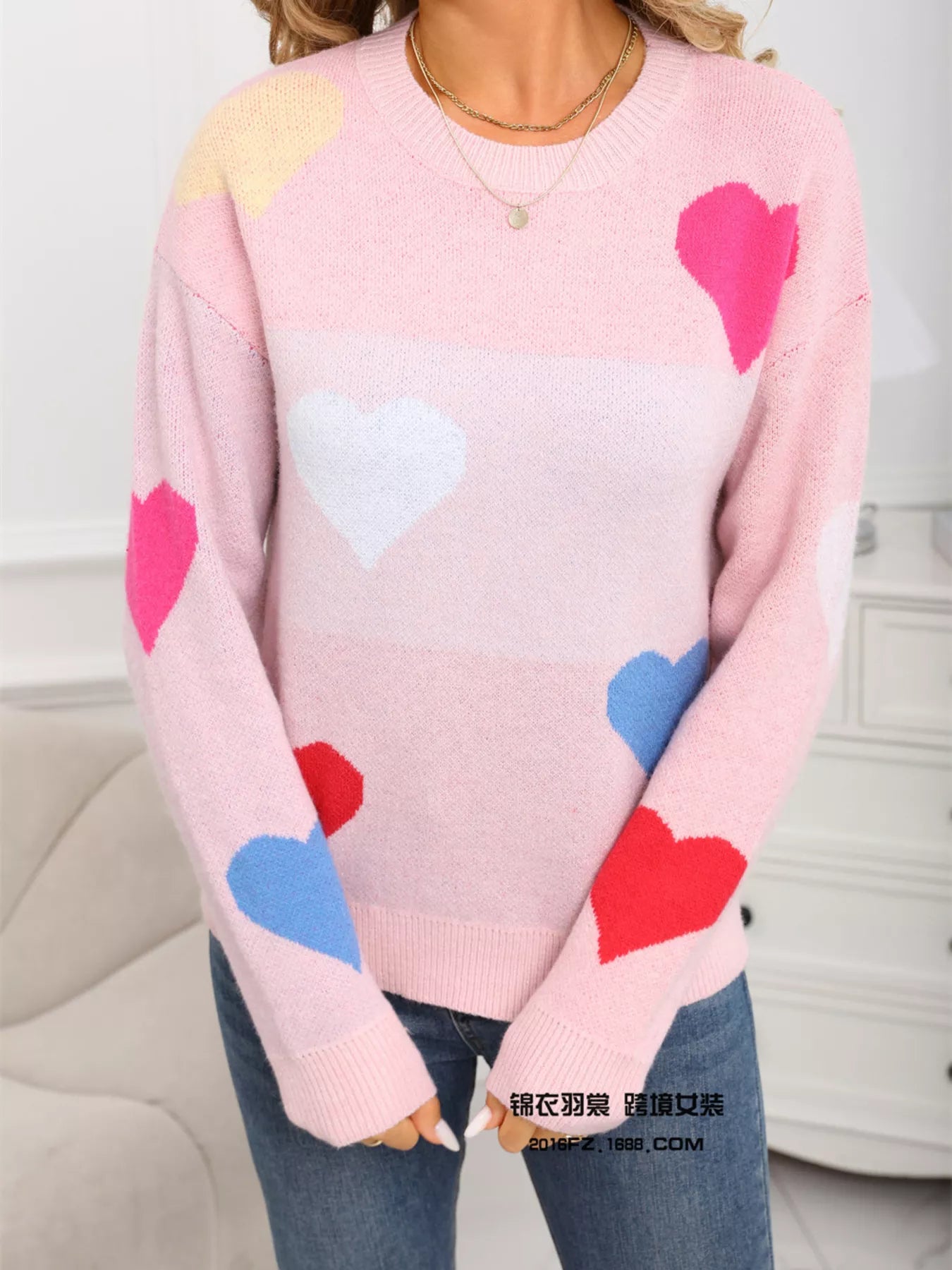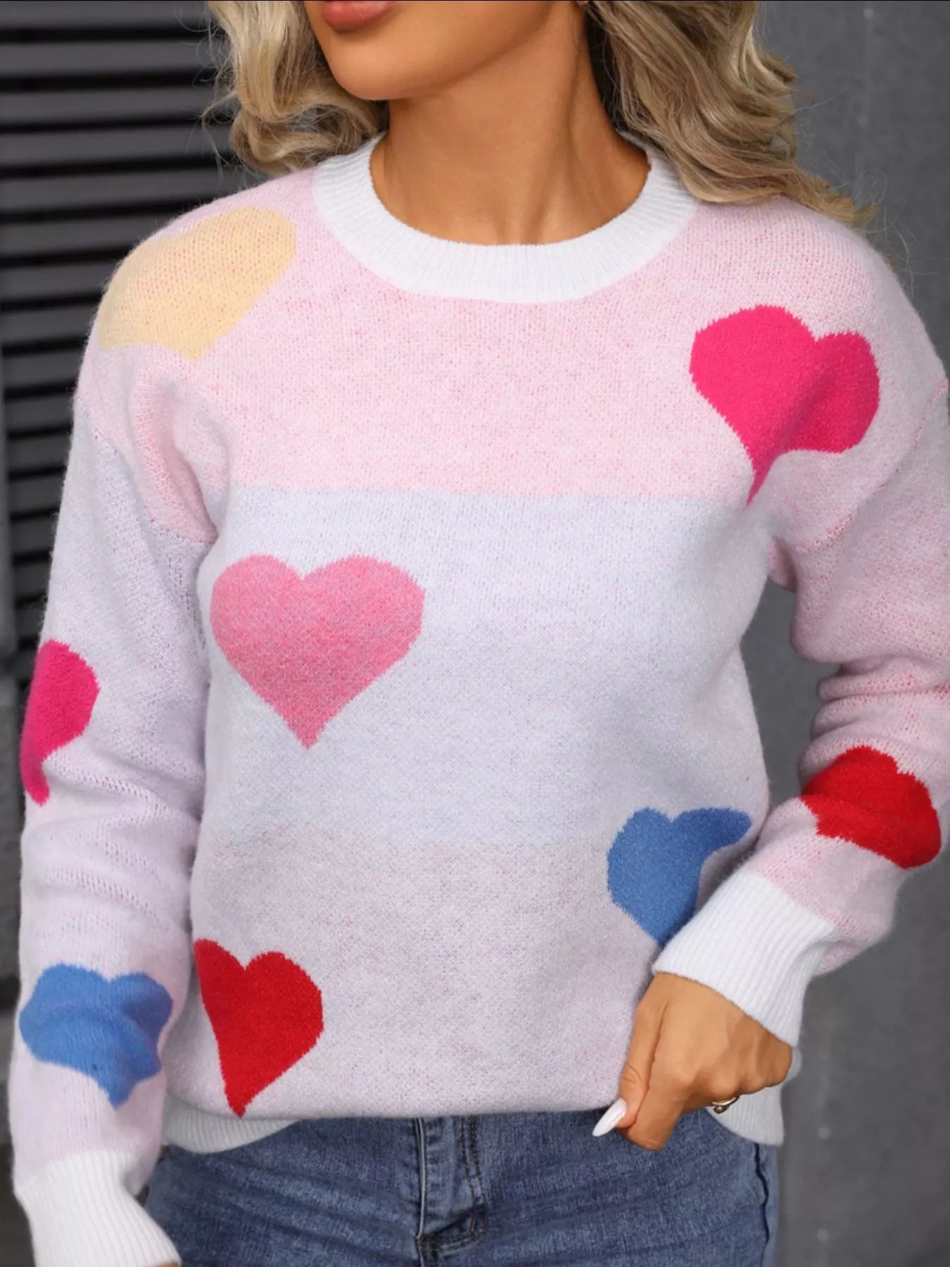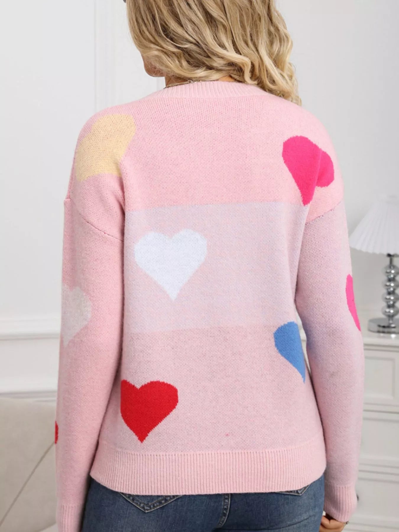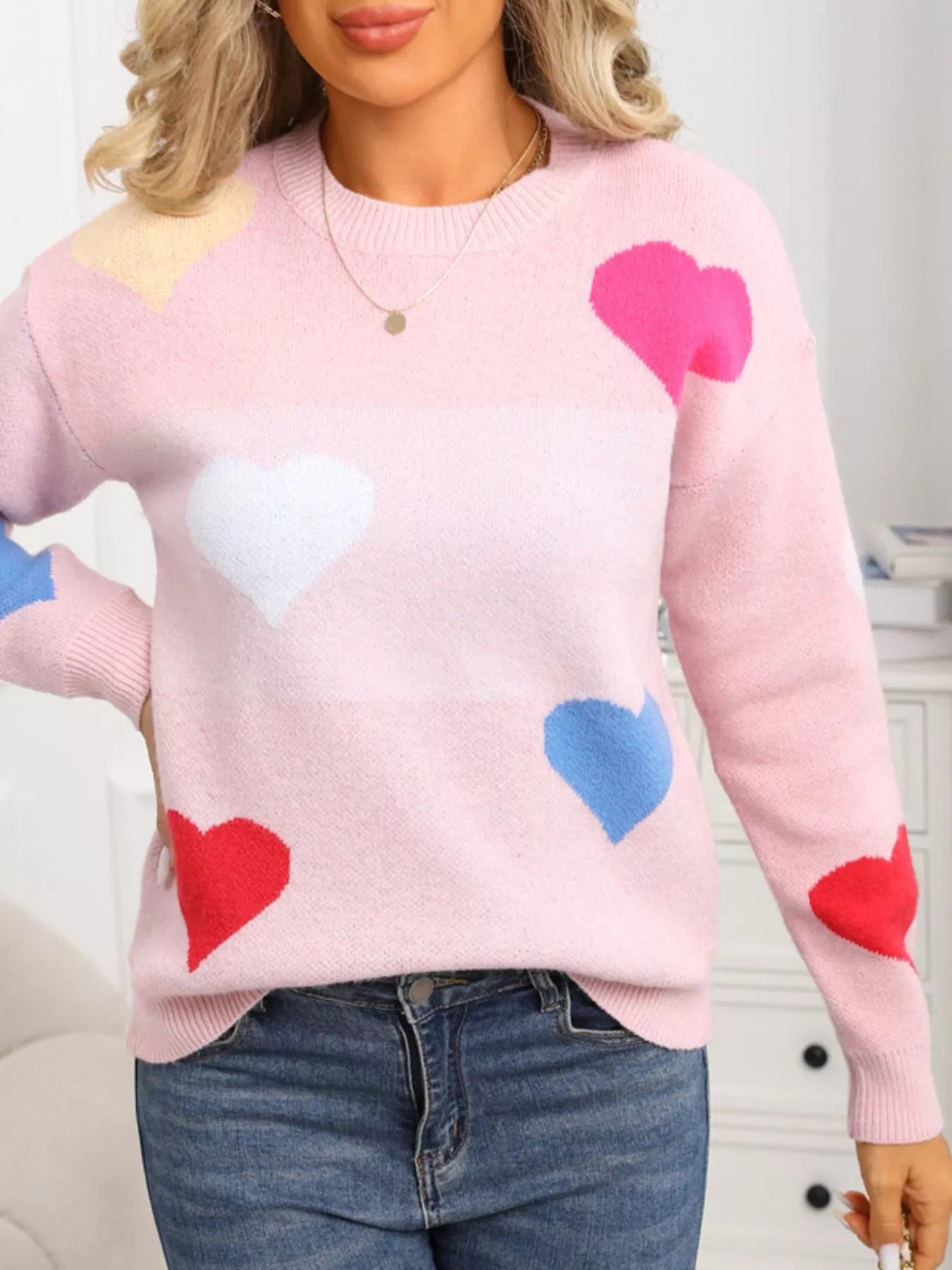 Valentine's Day Heart Round Neck Dropped Shoulder Sweater
